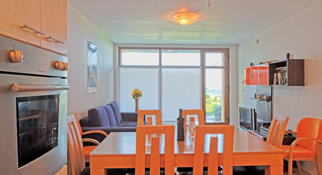 12 One Bedroom Apartment (спальня з двоспальним ліжком та хол з розкладним диваном, обіднім столом та обладнаним кухонним куточком (холодильник, плита, ел. чайник, посуд), є міжкімнатні двері, макс. 2 дор. + 2 дит. 70 м2).