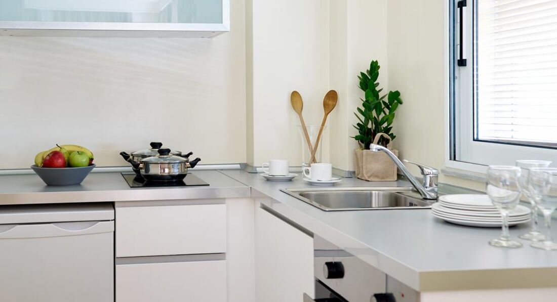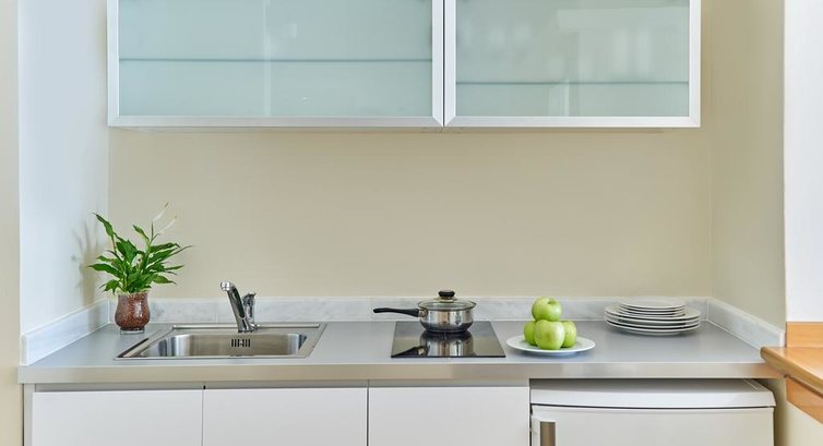 •маленька кухня з мікрохвильовою піччю, холодильником та кавоваркою;