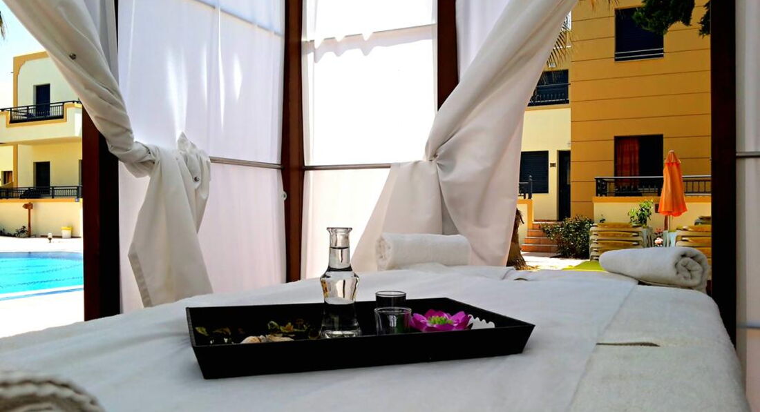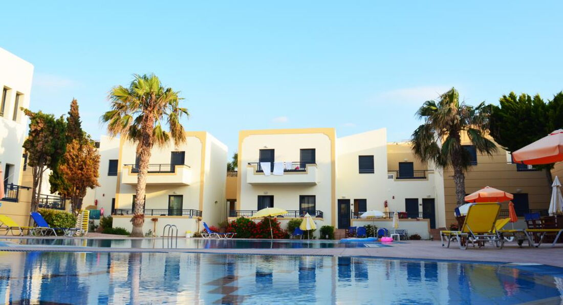 Готель, збудований у стилі острівної архітектури, представлений комплексом з 8 окремих корпусів, кожен із яких названий на честь одного з островів Егейського моря. Гостинний курорт відповідає всім європейським стандартам з розміщення, сервісу та безпеки. Розроблений спеціально для сімей з дітьми, пропонуючи різноманітні зручності та комфорт апартаментів із власною кухнею.