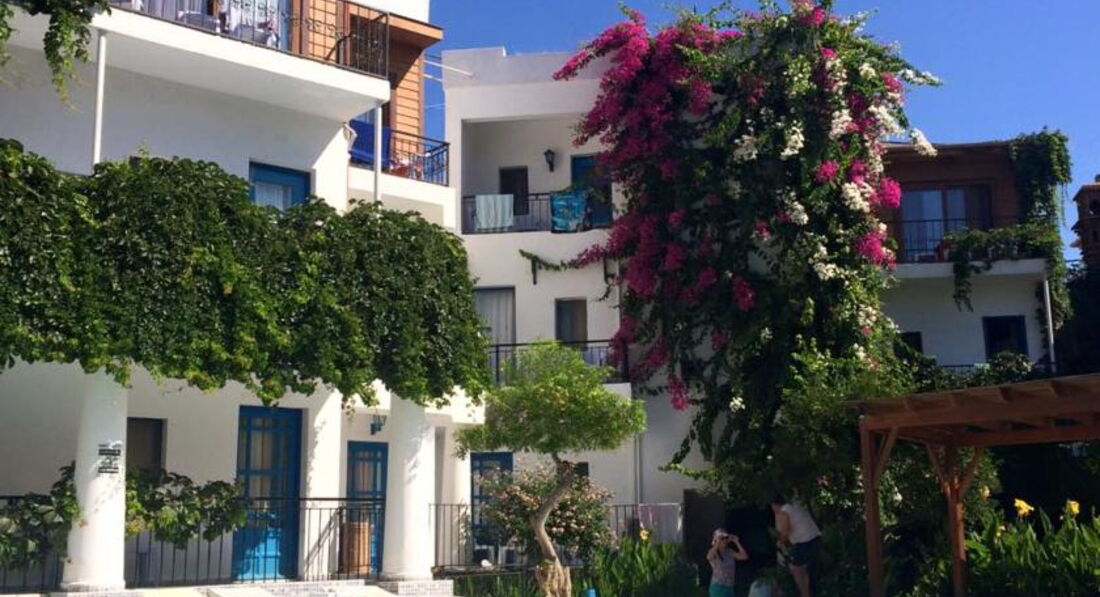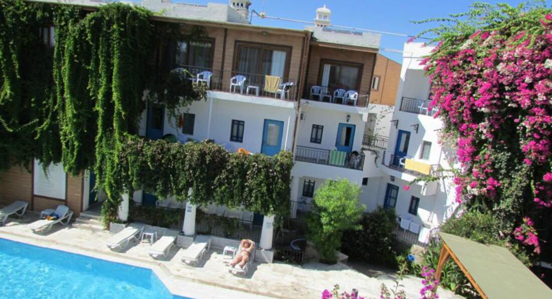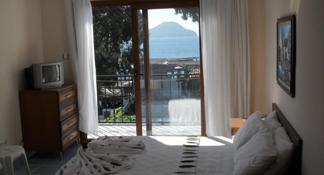 Единственный плюс - это близость к морю. Номера как в украинских "мазанках" бетонные стены, мебель крашенная в синий цвет и вода иногда есть горячая. неимоверно несет помойкой, в санузел иногда было не зайти, полотенцем лицо закрывали, да и душ страшнючий! Убирали наверно нормально, не напрягал этот вопрос. Еда скромная, обычная самая, хотя старался повар и сладости делал. территория маленькая и ухоженная. Этот отель стоит выбирать из-за бодрумского климата комфортного в самые жаркие месяцы и тем, кто хочет просто насладиться морем! Шоппинг раз в неделю в Тунгутрейс надо было ехать на рынок, там цены более чем приемлимые! ездили на экскурсии на остров Клеопатры и на дискотеку Катамаран! Очень понравилось, покупали в отельного гида Корал. Дискотека - 30 долларов с проездом и т.д. а остров - 65. Персонал своеобразный, если не принимаешь знаки внимания, то смотрят искоса и вредят из-под тишка, лезут в личную жизнь, все выспрашивают, по всем поклонникам надо было строго отчитываться. Вообще в регионе Эгейского моря и климат иной чем в Анталии и люди(турки) не такие открытые и добродушные. На берегу хорошие ресторанчики возле отеля. Но эта тройка более чем скромная, напрягало многое, хотя знали куда ехали!