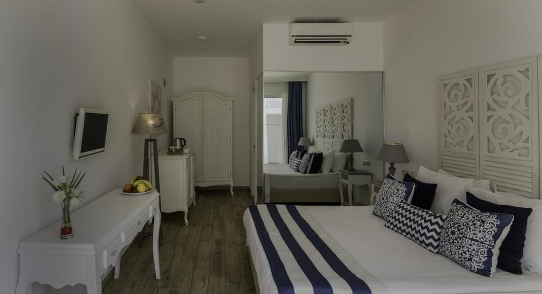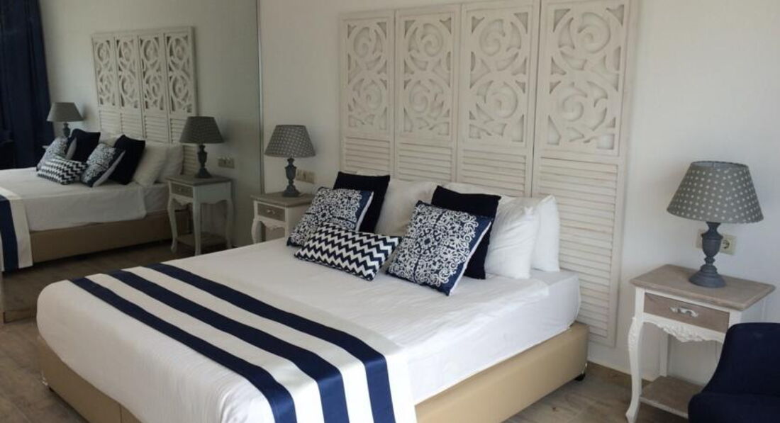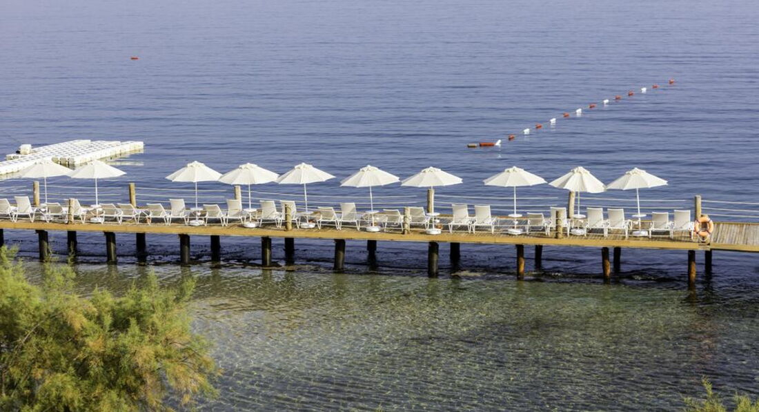 Начну с плюсов - очень чистое море, красивая природа, вкусненькие лепешки на ланч и платформа, с которой можно нырять в море, а потом загорать на больших мягких подушках, компенсируют ненавязчивый турецкий сервис, среднего уровня анимацию и ежедневные подъемы вверх в горку в жару к номеру. В целом отель нормальный на 4, у нас была проблема с кондиционером на протяжении всего отдыха, к концу 10-го дня мы ее все-таки решили. Нам очень понравилось в Бодруме, едем туда снова, но только уже в другой отель…
