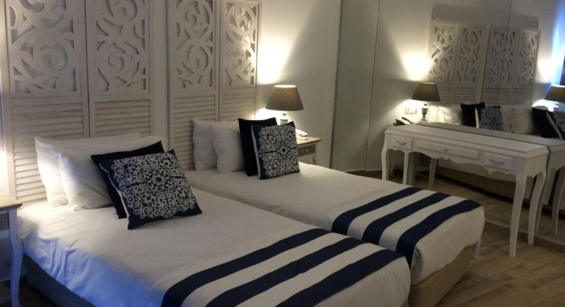 Отдыхали в этом отеле в сентябре 2007. Вполне приличный отель. Рядом с отелем Rixos. Стандартные номера, уборка ежедневно. Территория очень зеленая.Как и везде в Бодруме, в отеле в основном европейцы. Персонал вполне дружелюбный, никакой разницы в обслуживании русских и немцев. В основном ресторане достаточно разнообразное питание. Есть турецкий, рыбный рестораны. Возможно единственный минус, так это то, что отель стоит на крутом берегу. Лишний раз подниматься в номер было накладно.