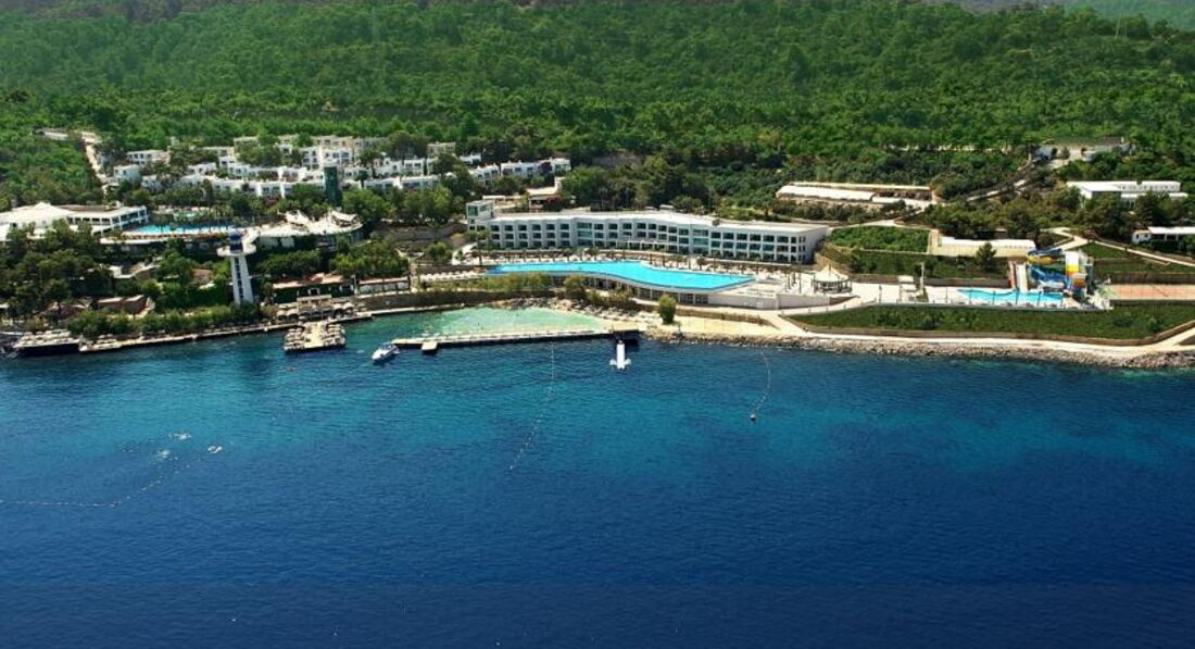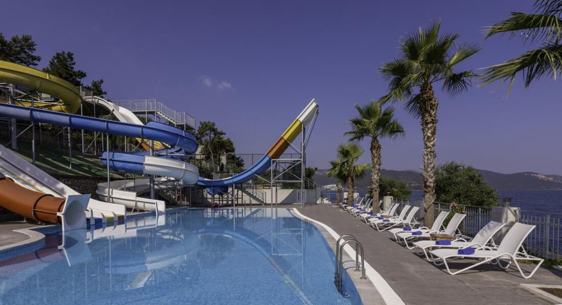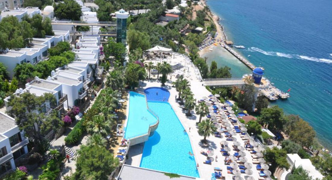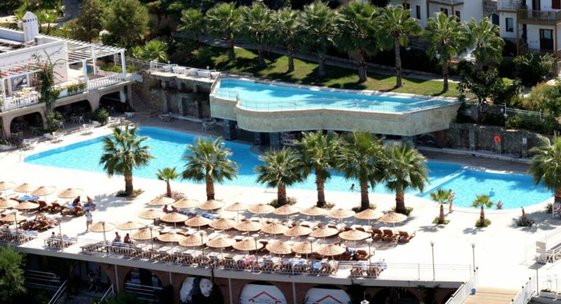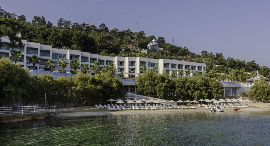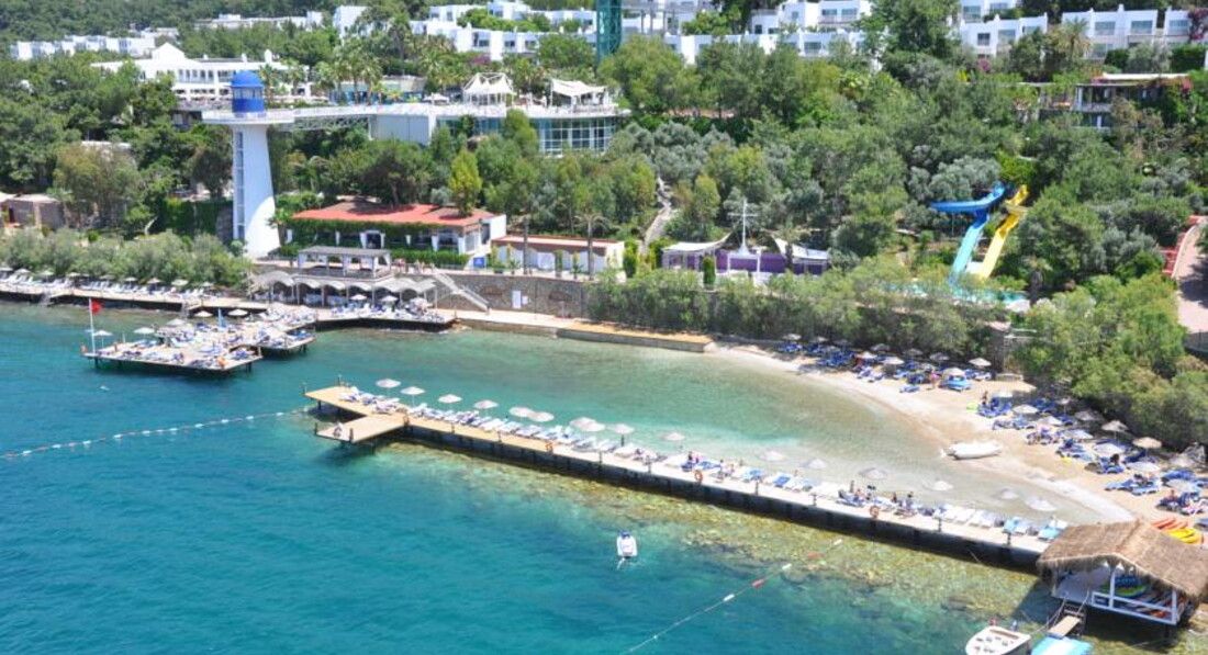 Осмативала этот отель в рабочей поездке. Территория большая, зелёная. Как и большиство отелей в Бодруме идёт каскадом к морю. Есть водные горки и небольшой участок расчищенного песчаного входа. Вода изумительного цвета. Номера приятные, есть детская анимация и детский клуб. Твёрдая 4*.