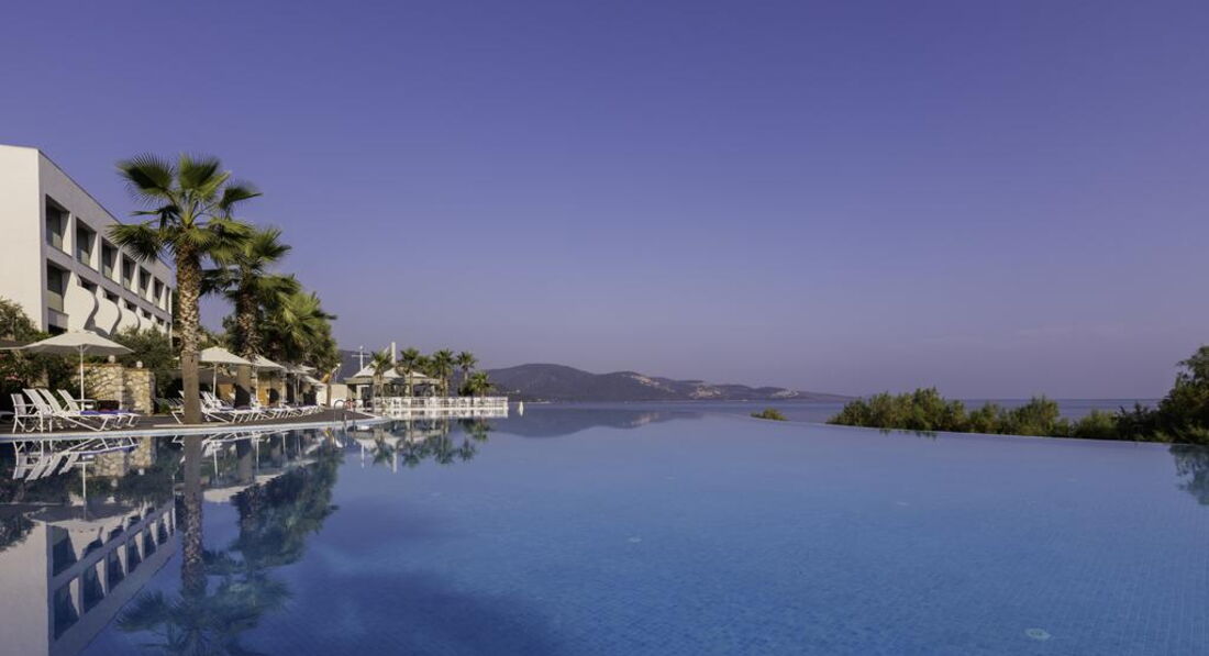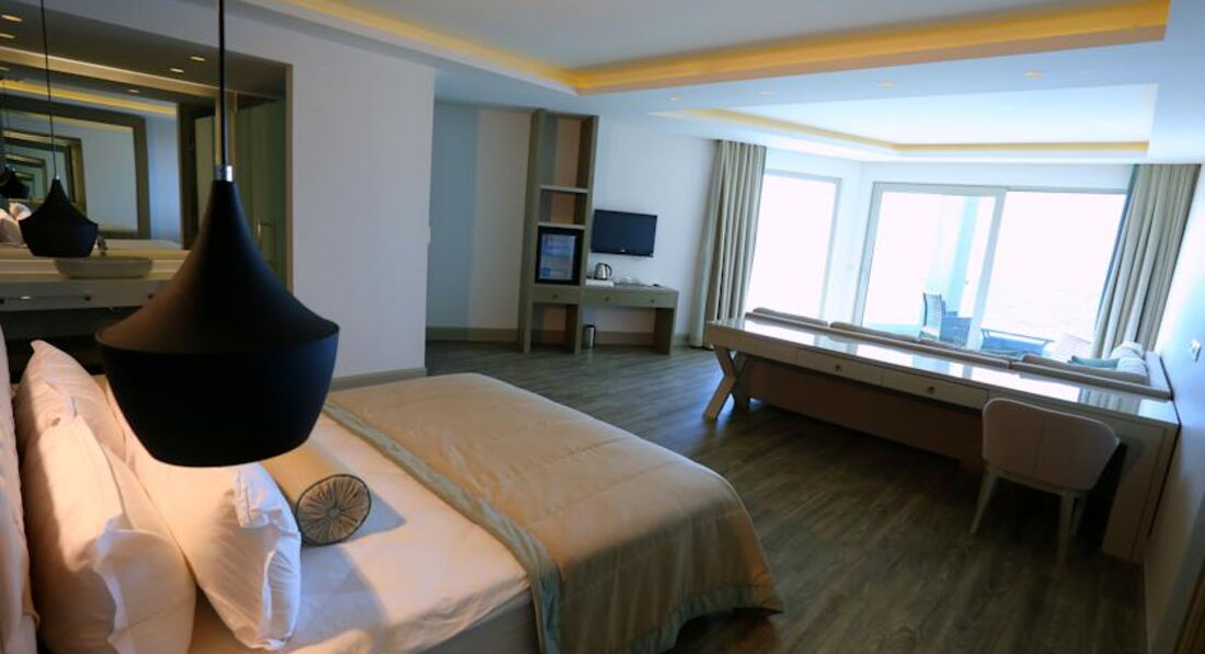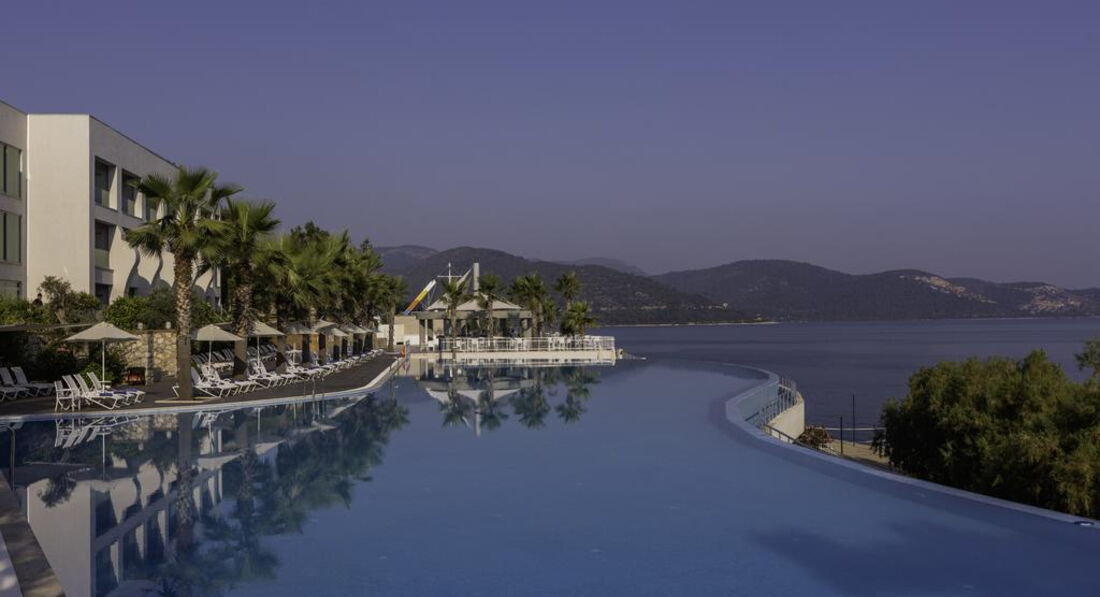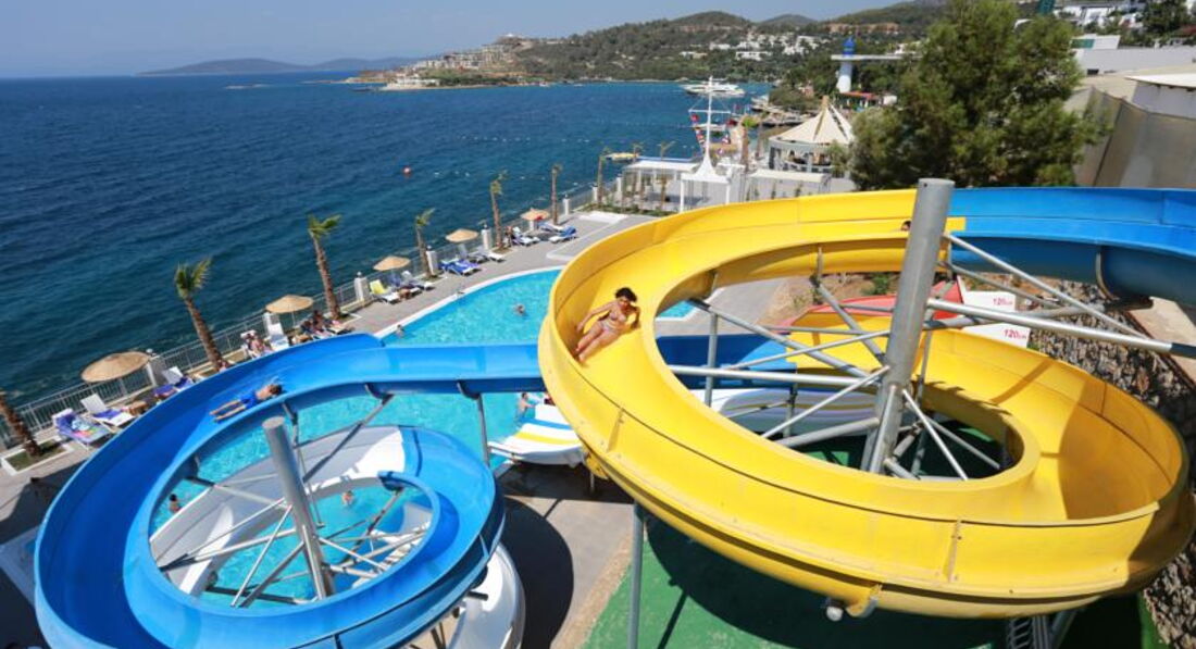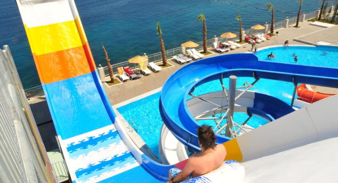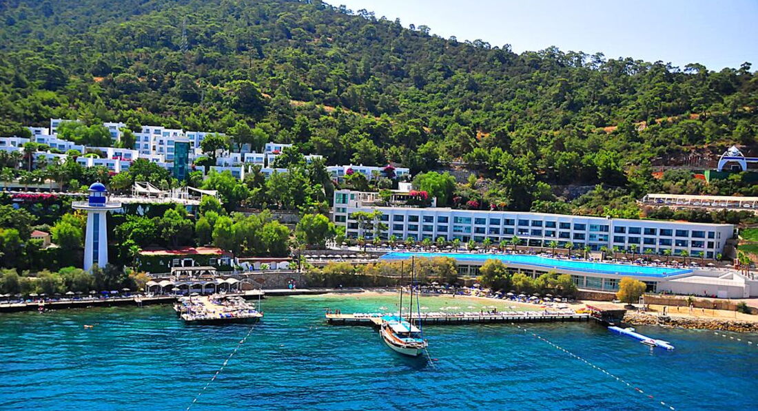 Осмативала этот отель в рабочей поездке. Территория большая, зелёная. Как и большиство отелей в Бодруме идёт каскадом к морю. Есть водные горки и небольшой участок расчищенного песчаного входа. Вода изумительного цвета. Номера приятные, есть детская анимация и детский клуб. Твёрдая 4*.