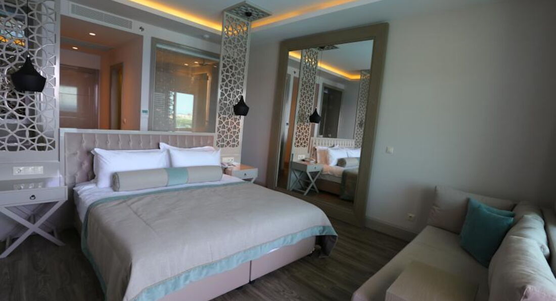 В этом отеле 2 звезды явно лишние, ни сервис, ни дизайн, ни питание не соответствует 5 звездам. Мы отдыхали в разных странах, всегда в пятерках, сравнивать есть с чем. Такого безобразия не встречали ни в одном отеле, горничные убираются толь за деньги, если не положишь, придет, откроет номер, денег нет- ушла, деньги есть просто поменяет полотенца. На табличку с просьбой убрать номер или не беспокоить не реагирует, вешай, не вешай. Есть там нечего, как это не странно звучит, на завтрак каждый день яйца и блины, для Турции выпечка и хлебобулочные изделия – святое, но и в этом этот отель не переставал удивлять, разнообразия нет , хлеб белый и черный (кто отдыхает в хороших пятерках , понимает , о чем я пишу). Дискриминация русских, сколько слышала об этом, только в этом отеле узнала, что это такое. Наши гиды буду писать письмо в Россию об отказе работать с этим отелем. Так что в этот отель тому, кто хочет щегольнуть, что был в пятерке (цена отеля соответствует плохой четверки), а для тех кто себя уважает, добавьте несколько тысяч и получите достойный пятизвездочный отдых.