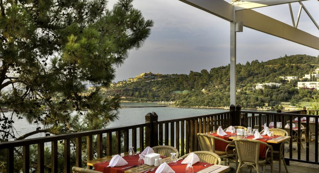 Бари та ресторани: головний ресторан розрахований на 550 осіб (критий, з кондиціонером, літня тераса, дитяче меню, дієтичне меню, дитячі стільці), бар біля басейну (09:00-02:00), бар на пляжі (09:00- 19:00), диско-бар (23:00-02:00), вітамін-бар (09:00-18:00). 4 ресторани A la Carte: китайська, італійська, рибна, турецька - відвідування кожного з ресторанів безкоштовно 1 раз на тиждень, за попередньою резервацією.