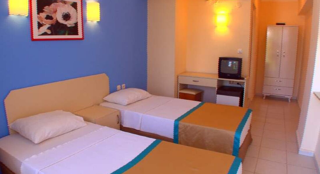 Отдыхали в этом отеле с 6 по 16 июля 2015г., втроем с подругами. Приехали в отель в 9 часов вечера, нас сразу отправили на ужин а после него быстро заселили в номер. Первое впечатление от номера было хорошее, нас заселили в family room, 2х комнатный просторный номер, с терассой, в одной комнате кондиционер, есть фен, телевизор и телефон не работают. Сначала мы были довольны, поскольку покупали путевки и брали promo номер. Но, походив 10 минут по номеру поняли, что он очень грязный, в пыли и известке, в шкафах слой пыли, простынь в пятнах, полотенце с дырой. Мы не привередливые и нас это не сильно расстроило. Сам отель красивый, из отеля видно море, хороший бассейн, правда лежаки всегда заняты. Насчет еды - для 3ки вообще замечательно, кормили вкусно, на ужин всегда или шашлык или рыба, много овощей, сладостей, арбузов, салатов и других вкусностей. За еду твердая 4ка. В общем в первые дни мы были довольны. Но после того, как к нам за 3 дня ни разу никто не пришел убрать номер, а в номере было и до нас грязно, а через 3 дня стало еще хуже, мы пошли на ресепешн. На ресепшене удивились, что у нас не убираются и сказали, что пошлют уборщицу. Придя вечером в номер, мы обнаружили на кровати гору сложенного аккуратно постельного белья и полотенец и все. Мы опять пошли на ресепшн, сказали звать нам менеджера, на что нам ответили: ноу проблем, завтра у вас уберутся. На следующий день пришел парень и наконец-то сделал уборку: размазал грязь по углам, заправил кровати, не меняя постельного белья, поменял полотенца и выкинул мусор. После этого он приходил еще один раз и также размазал грязь по углам, было на полу видно где он прошелся тряпкой. То есть, за 10 дней у нас в номере убрались 2 раза и то посредственно. Также из минусов - во время уборки выставляют тарелки на пол с едой из номеров и потом оставляют их минимум на сутки, неудивительно, что по всему отелю ползают огромные муравьи, штук 10 мы наблюдали и в нашем номере, правда один раз их приходили травить. Ну и напоследок, нас очень удивили в последний день! Как обычно мы в 12.00 пришли сдавать ключ на ресепшен, а до самолета оставалось еще 8 часов. На ресепшене с нас срезали браслеты отеля и заявили, что мы имеем право сидеть только на ресепшн, не можем купаться в бассейне и кушать. И, если мы хотим пообедать, мы должны заплатить 10 долларов с человека (деньги у нас были, но дело тут в другом). Поскольку, эти сутки по путевке у нас были оплачены, то по всем правилам мы можем делать в отеле все, кроме нахождения в номере. Мы, конечно же позвонили нашему гиду (туророператор Санмар), который сказал, что этот вопрос не в его компетенции и мы должны звонить отправляющей стороне и он даже не приехал в отель. Мы дозвонились в наше агентство, в котором покупали путевку, там были в шоке и сказали, что такое впервые происходит и действительно этот день у вас оплачен и такими вопросами должна заниматься принимающая сторона в Турции, потому что на месте эти вопросы решаются быстрее. В общем, мы остались в тихом шоке и остаток дня был испорчен. В добавок ко всему, в предыдущей день мы договаривались с хорошим парнем на ресепшен, который говорит по-русски, что без проблем можем купаться в бассейне и даже потом сходить в хамам, помыться. Но, когда мы выезжали из номера, этого парня не было на ресепшн, поскольку он работает по ночам. А работал в это время турок и еще один м