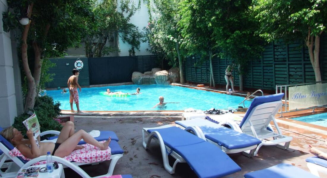 Сам отель находится минутах в 10 от моря(это его плюс) . и в 40 минутах от всем известной БАР СТРИТ и от центра города ,что является единственным минусом. которым я нашла в данном отеле.... ТК если вечером выходишь на позитивчике погулять и идешь пешком до БАР СТРИТ ,то в три часа ночи после отличных тусовок уже не хочется и не можется возвращаться пешком,поэтому приходилось ездить каждый вечер на такси. а это 20 лир ,те около 600 рублей * 9 дней и можно посчитать сколько мы потратили на это денег ....