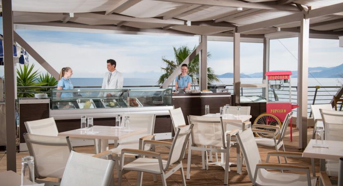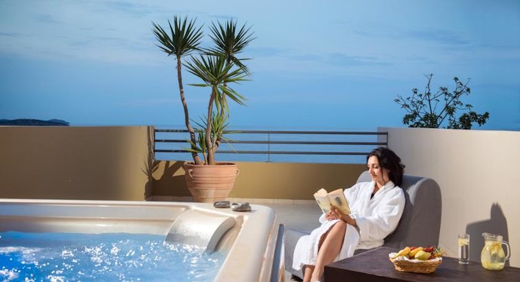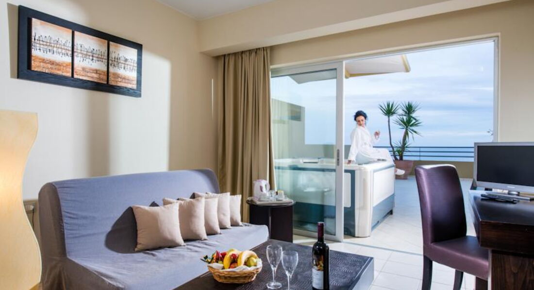 junior suite (вид на море, спальня з вітальнею, осн. ліжко – 2 односпальні, дод. – софа або розкладне ліжко, джакузі на терасі, макс. 2+1 або 3 чол., 45 м2).