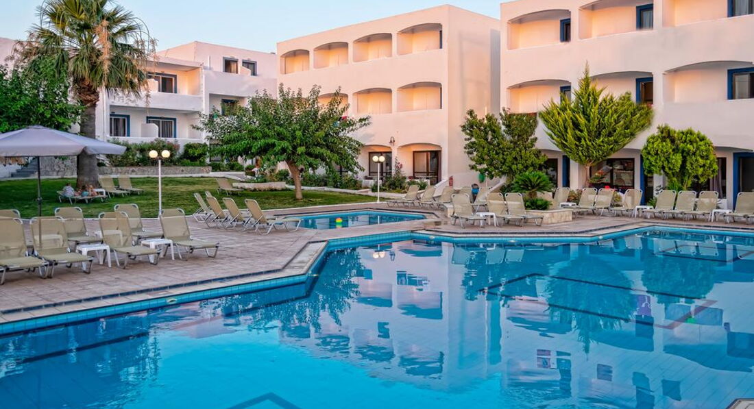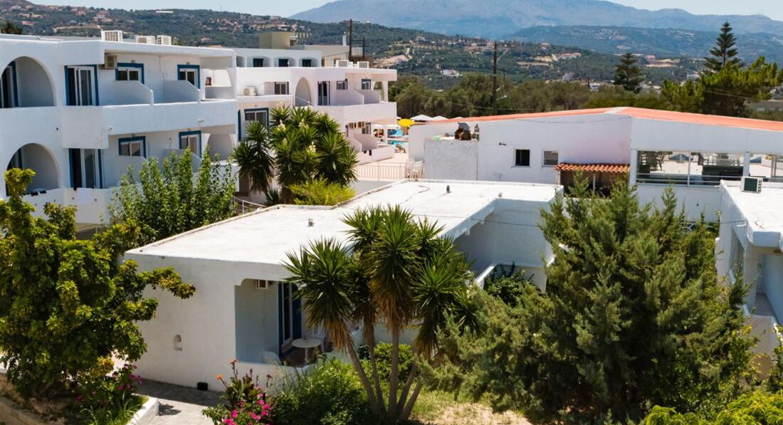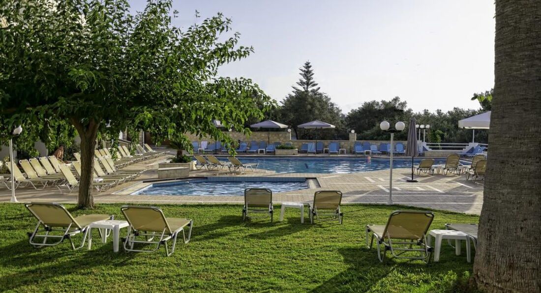 Розташування: за 25 км від аеропорту м. Іракліон, за 2 км від центру рибальського села Агія-Пелагія. Автобусна зупинка на вході в готель (автобус ходить від 2 до 4 разів на день).