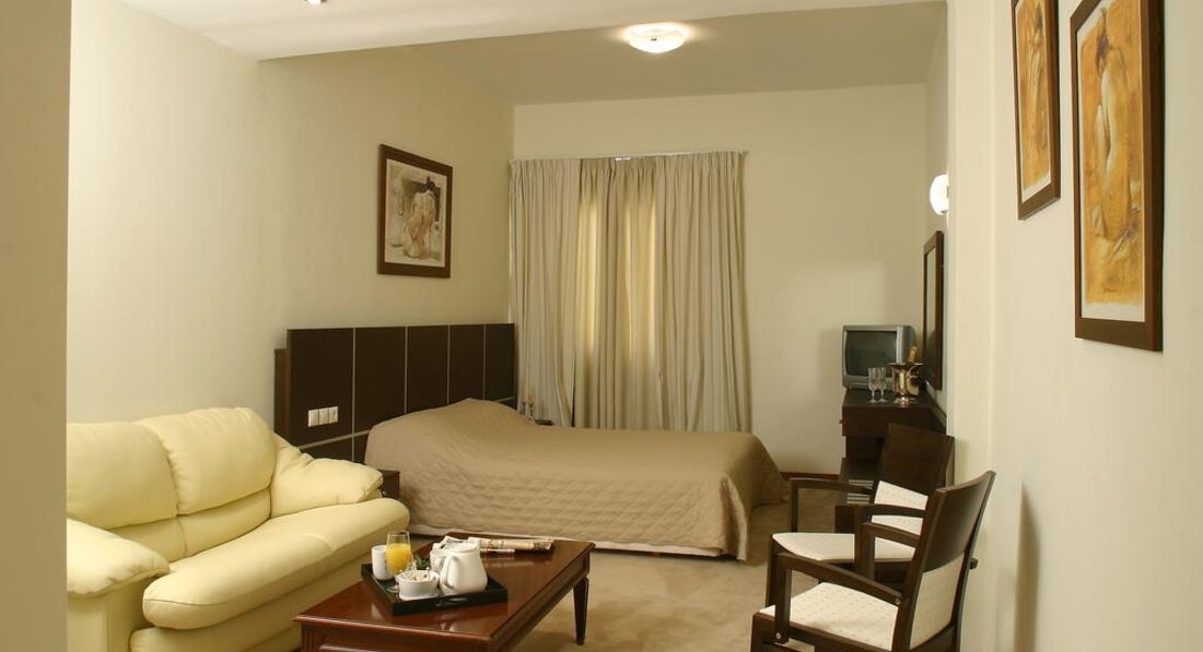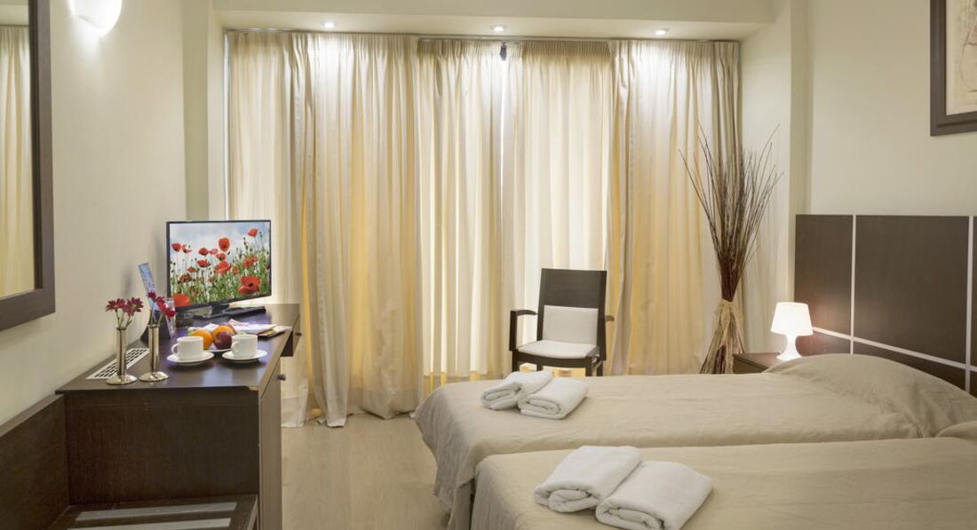 Чотириповерхова сучасна будівля, ліфт, простота стилю, комфортабельні номери, бар, інтернет, обслуговування номерів. У легкій доступності розташований центр Афін, виставкові та торгові центри, банки, центри розваг.