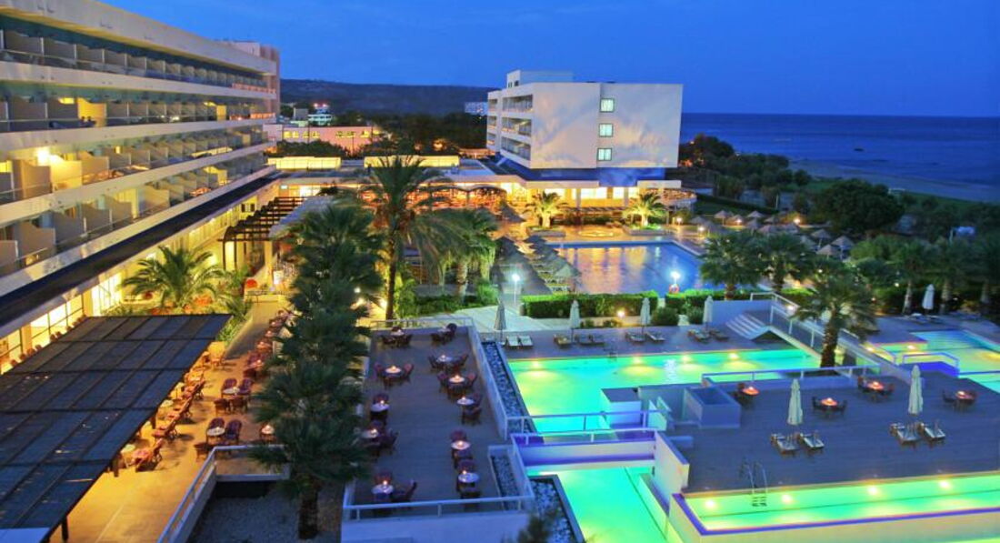 Гарний готель у своїй категорії. Полога зелена територія, що сприяє прогулянкам. Ви можете легко дістатися до всіх визначних пам'яток міста Родос. У 2 км туристичне містечко Фаліракі, відоме своїм нічним життям. Гості, які відпочивають у номерах анекс-комплексу Blue Star через дорогу, користуються абсолютно всією інфраструктурою та послугами основної території готелю; прохід на пляж здійснюється через дорогу та територію готелю. Вдале розташування, широкий піщаний пляж, активна анімація протягом усього дня та розвинена інфраструктура роблять готель чудовим варіантом для відпочинку молоді та сімей з дітьми.