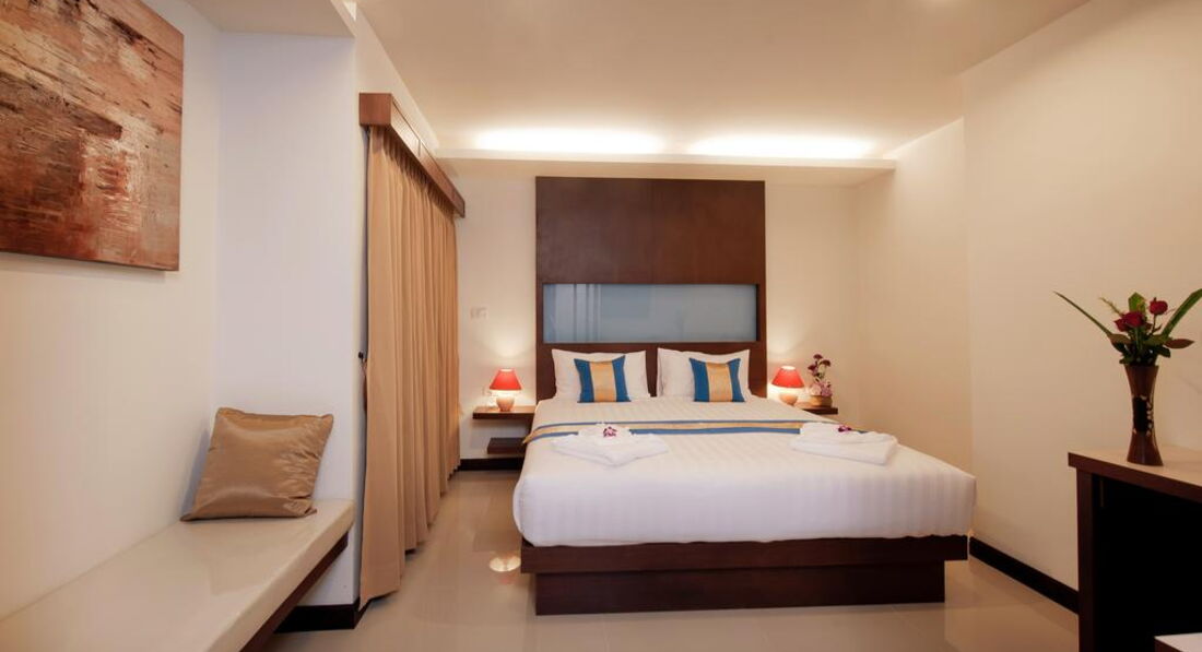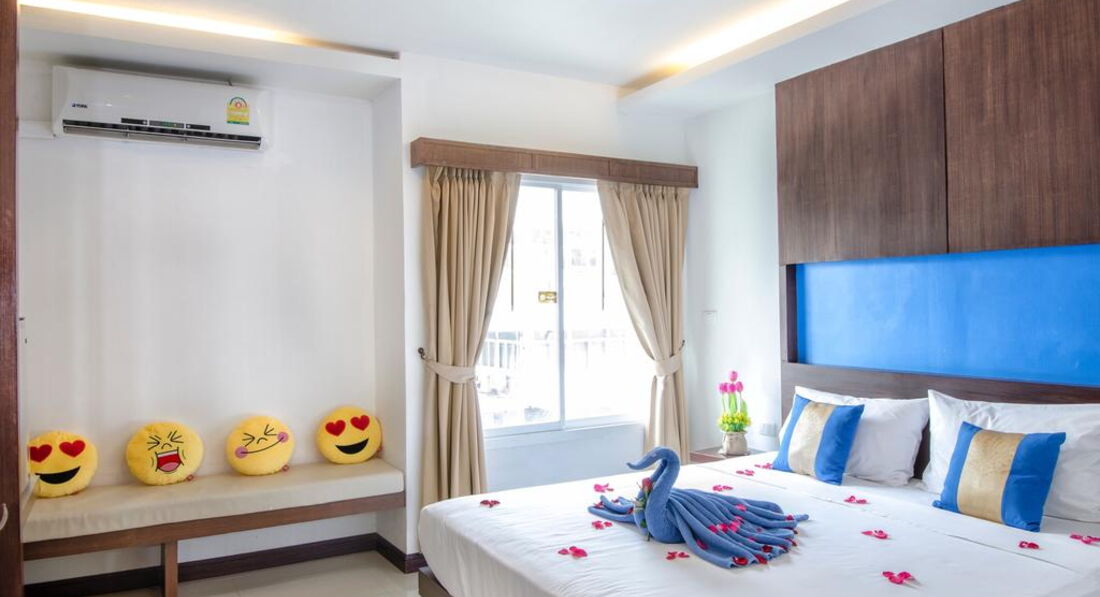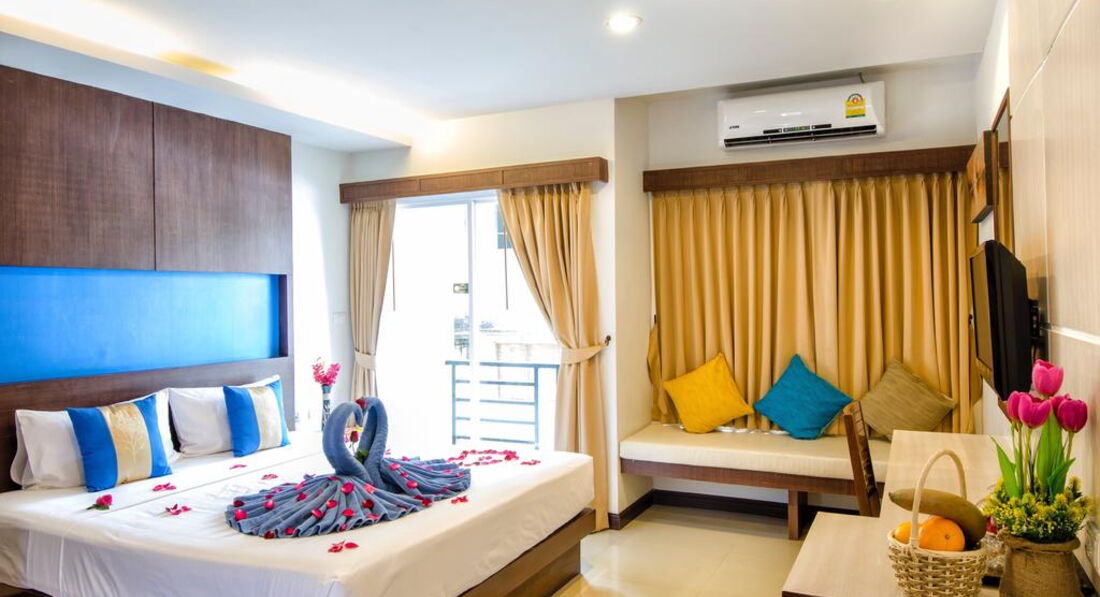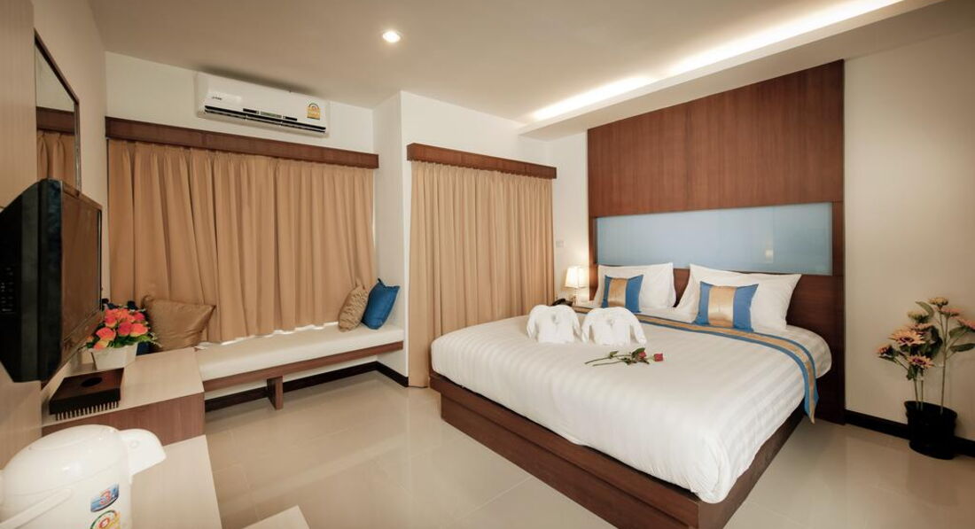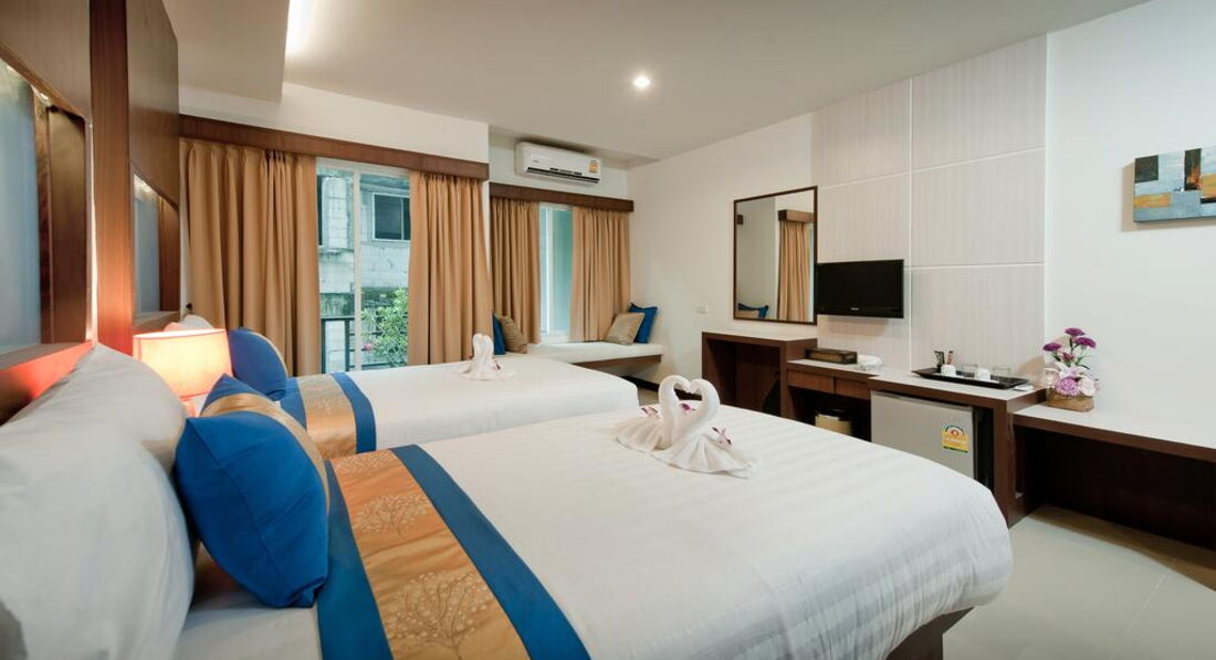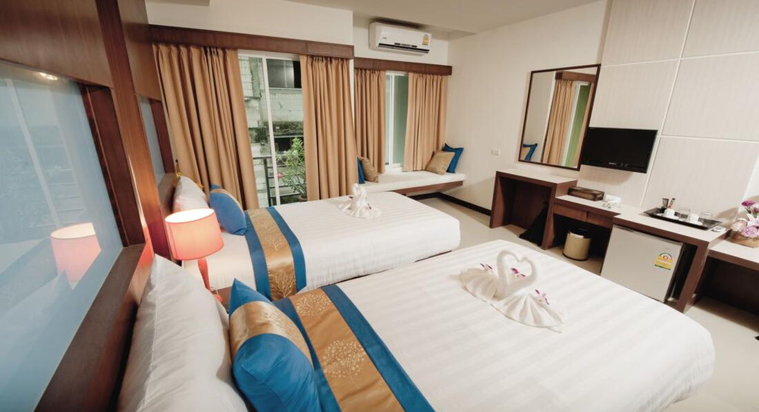 Типи номерів: • 63 superior (25 кв.м, макс. 2+1 чол, 40 dbl/2 twin; без можливості дод.ліжка; частина номерів - з невеликим французьким балконом; 1-7эт, вид на вулицю/садок) • 38 deluxe (30 кв.м, макс. 3/2+1 чол, 25 dbl/13 twin; 1-7эт, вид на вулицю/садок) • 4 honeymoon suite (35 кв.м, двоспальне ліжко, макс. 2 чол; 7й пов, вид на вулицю/садок) Компліменти для іменинників та молодят – прикраса ліжка та тарілка фруктів.У номері: • підлога в спальні-керамічна плитка • кондиціонер • ТБ • Wi-Fi (безкоштовно) • сейф • стіл стілець • міні холодильник • набір для приготування чаю/кави у deluxe, honeymoon suite - безкоштовно • набір для приготування чаю/кави в superior – на запит на ресепшен, - 100 бат на день • 2 пляшки води щодня безкоштовно • душ (honeymoon suite – душ та ванна) -з туалетним приладдям • фен • балкон (крім superior – не у всіх номерах, заздалегідь не бронюється) • щоденне прибирання • зміна постільної білизни – раз на 3 дні.