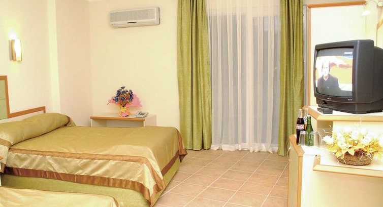 Дорога от аэропорта до отеля заняла около 3-х часов.Приехали в отель в начале 12-го,засели сразу же, денег не давали. Отель замечательный, чистый, уютный, состоит из двух корпусов, территория не большая, около каждого корпуса свой бассейн, в главном корпусе бассейн с двумя горками, два бара. Питание отличное, кормят очень вкусно, персонал добрый, отзывчивый. У отеля система "Все включено",поэтому голодным никогда не останешься.В главном корпусе у бассейна есть снек бар,в котором можно перекусить с 12 до 15 (фри,спагетти,зелень,булки),такой же бар на пляже(тоже кормят в это время,пиво, напитки бесплатно).Алкоголь(пиво,раки,джин) бесплатно,есть платный.Пляж находится в 10 мин пешком от отеля.Пляж Клеопатра, песок, вход супер, лежаки платно (2 лежака 1 зонт 5 долларов).Так же курсирует автобус каждые 15-20 мин.Этот же автобус возит в центр Алании(маг Вай кики) два раза в день в 11 и в 14(бесплатно). В отеле в основном иностранцы, русских очень мало,но это даже лучше. Номера хорошие,убирают каждый день,чисто. Анимация отличная. Экскурсии брали у Сони,это как идти на пляж, у тур. оператора в отеле очень дорого. Отдохнули просто супер, вернулись бы еще. Хорошего отдыха!!!!