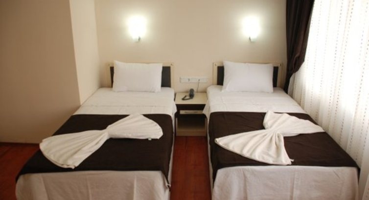 Отдыхал с женой и дочерью (10 лет) с 24 июня по 3 июля. Считаю, что по соотношению цена-качество отель превосходный. Номер нам дали на 3 этаже, вроде и маленький, но не тесный. В номере кондиционер, небольшой холодильник, шкаф, сейф (за отдельную плату, 15 $ за 10 дней), санузел с душевой кабинкой, фен. На балконе – стол и два кресла (пластиковые). Телевизор в номере показывал только один турецкий канал, мы сначала попытались настроить, потом махнули рукой, т.к. и дома не любим зомбоящик. Но уверен, что если бы обратились к персоналу, нам бы без проблем помогли. Персонал вообще очень отзывчивый и культурный. Правда, плоховато понимают по-русски, но в принципе объясниться можно – по-русски, по-английски, жестами.