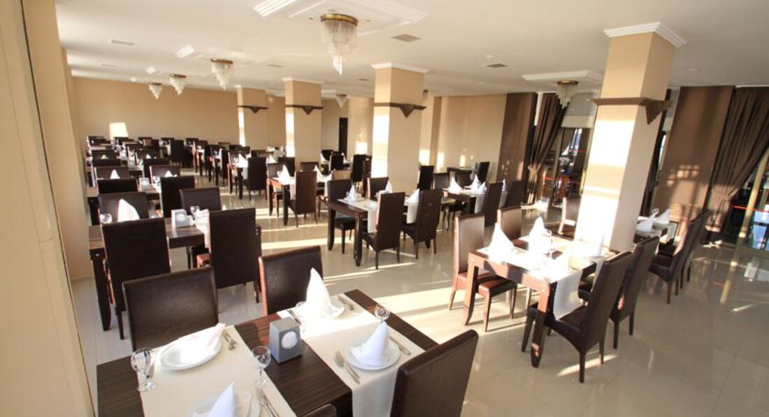 Ресторан, ну ...может быть, хотя грязные скатерти ободранные обшарпанные стулья на открытом балконе к этому понятию не очень относятся. Столовка как кто то "окрестил". Еда разнообразная вегетариански обжарено,парено и проч.Вся фишка в том что здесь забыли про МЯСО! Только куры в разных ипостасях, и жареная костлявая СЕЛЕДКА от которой идет такой специфический запах на пол отеля, даже килька была жареная, нет с картошкой ...соус, кто то наверное и ел.В первое время были помидорчики чери, оч. вкусные потом пропали... Море продукты-такого понятия в этом месте не существует их нет в принципе,кроме кильки и селедки - нету ни чего.Фрукты-ягоды- яблоки и арбуз, пару раз нектарин кислый и алча незрелая,да и еще какие то зеленые фрукты которые надо есть с солью.