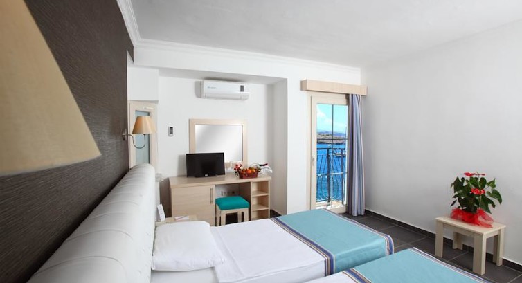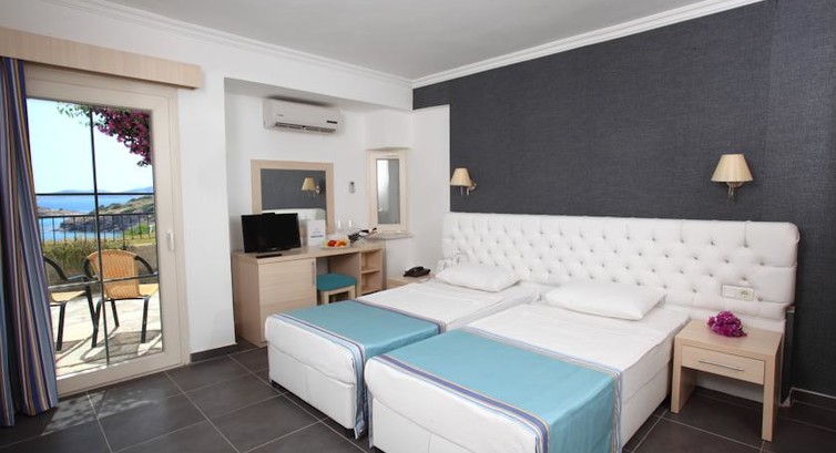 Плюсы: симпатичная территория с красивыми видами на море и напротив находящийся греческий остров Кос,хорошее разнообразное питание,пешком из отеля 25 минут до набережной и центра города Бодрум.