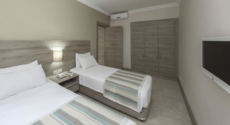 Были в этом отели с 29.05-08.06.2017 2 взрослых с двумя детьми (8 лет и 1 год). Отель большой, красивый, много высоких деревьев, что затеняет и помогает от жары. Так как отель на холме, приходиться подниматься и спускаться, но нас это не напрягало. Брали коляску. Этот отель семейный, много детей, от мало до велика. Есть мини-клуб, с 01 июня начала работать SUN FAMILY CLUB, русскоговорящая аниматор Оксана, клуб рассчитан от 4 лет, но думаю маленьких детей там одних в таком возрасте не оставишь, больше рассчитано на более старший возраст, так же рядышком есть детская площадка под навесом, и детский бассейн. Пляж хороший, мне лично так как я была с маленьким ребенком мне не хватала песка, у них не песок, а мелкий мелкий камушек. Вода в море в это время года прохладное, но мы купались. Кормили хорошо, была каждый день говядина, баранина, рыба, курица, индейка, сыры, супы, десерты и т.п. Был детский буфет, детское меню, т.е. например была отварная курица, овощи отварные (цветная капуста, брокколи, морковь, картофельное пюре и тп.), а так же был блендер. Еще один минус, горки надо менять, чувствуются стыки, нет горки с «ватрушками», еще желтая горка не работала, получается для взрослых только 2 горки и то не очень. Номер был у нас CLUB LARGE, это две комнаты без двери, в одной комнате большая кровать (2м*2м), а другая прихожая с двухъярусной кроватью (в принципе на эту кровать может поместиться и взрослый). В номере мне не хватила места в шкафу, шкаф оказался маловат! Интернет есть в лобби, еще на территории ловит, но слабовато. Персонал приветливый, русскоговорящих не много. Русских в это время отдыхало очень много, а так отдыхали еще немцы, итальянцы, турки. Сам отель находиться в красивом месте, море чистое. В целом отель понравился.