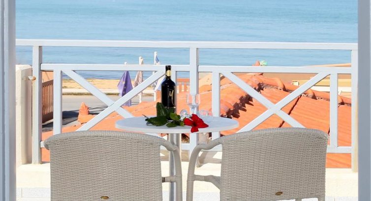 шезлонги та парасольки на пляжі платно, пляжні рушники видаються під заставу (10 євро)