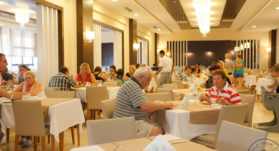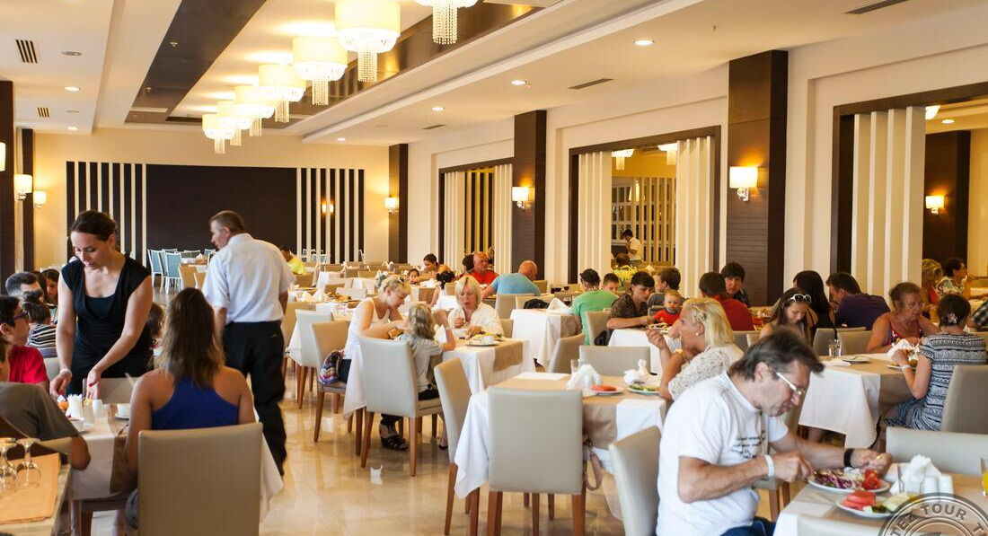 Головний ресторан – інтернаціональна кухня. Ресторан A la Carte - турецький ресторан (19:00-21:00, безкоштовно 1 раз за умови проживання щонайменше 1 тиждень, за резервацією). Бари: бар на пляжі (10:00-18:00), бар біля басейну (09:00-00:00), лобі-бар (24 години), снек-бар (11:00 - 18:00), диско -Бар (платно).