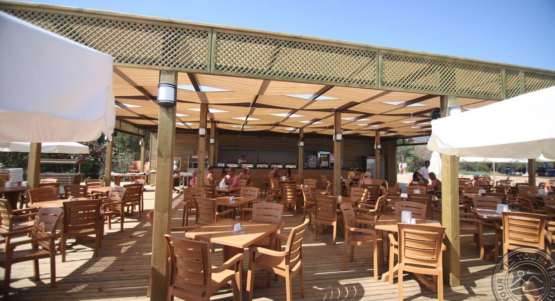 На пляже есть свой бар, кафетерий, в котором можно попить воды-колы-пива-вина, а после 11 накрывают фаст-фуд. Котлетки, овощи и,конечно, картофель фри.