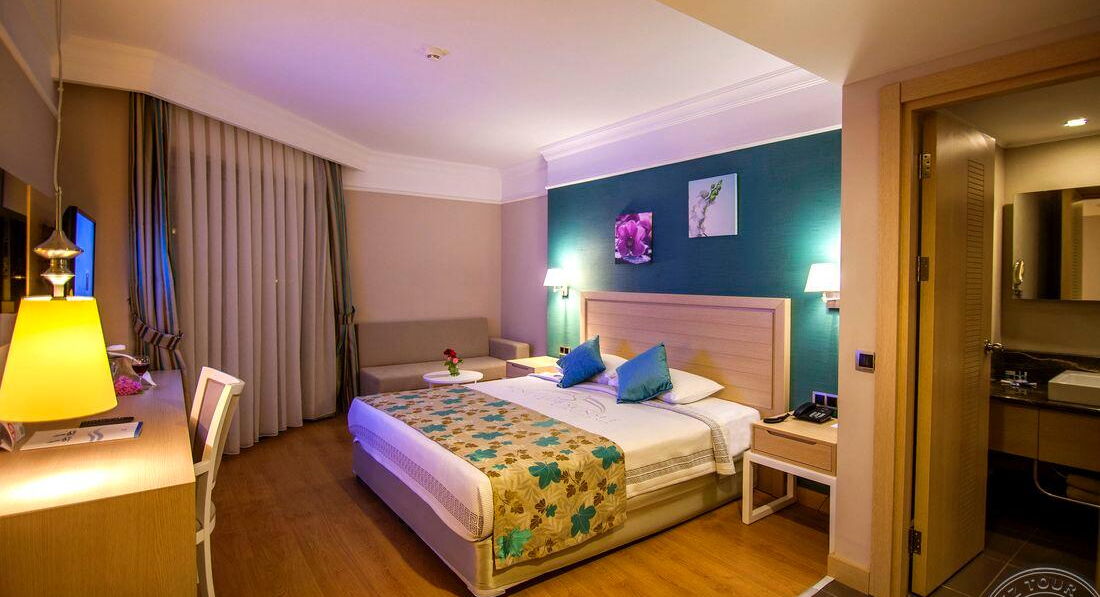 Очень понравился отель,от момента пересечения дверей входа-до момента выхода из него. Отель на мой взгляд идеально подходит для отдыха с детьми, тихого, спокойного, без пьяных выходок других отдыхающих! Очень много немцев, практически 90%. Но нам с ребенком это никак не мешало. О заселении: Заселили нас очень быстро, в течении 2 минут, заселили во второй корпус на 4 этаж. Номер очень чистый и опрятный, убирались каждый день, кондей в норме. Ванная комната-тоже очень чистая,никаких следов плесени(как в некоторых отелях) полотенца так же менялись каждый день, всегда все чистенькое. В общем номер просто огонь! Питание: Питание на убой. Кормят с 7 утра и до 24 ночи,голодными не останетесь. У меня сына, вообще проблема чем то накормить, там проблем у нас с этим не возникало, ребенку все нравилось (сыну 4,35 года). Анимация: детская анимация вообще огонь,рассказать словами не получится,нужно видеть, я плакала от смеха! Спасибо Аниматорам-вы просто супер! Персонал: Персонал очень приветливый, начиная от горничных-кончая руководством отеля, всегда улыбаются, интересуются все ли нравится, во время приема пищи-официанты всегда принесут попить, приберут со стола посуду,крошки( чего я редко встречала в других отелях на фуршете-обычно самообслуживание-самообслуживание, тут чувствуешь себя так будто пришла в ресторан вип класса и ты звезда, все вокруг тебя кружаться. Ни разу за весь отдых не было такого что бы нам с сыном приходилось искать убранный стол что бы покушать, столы всегда чистые и убранные. Просто приятно туда заходить. На ужин на улице всегда что то жарят на мангале, очень вкусный шашлык у них, пальчики оближешь) Пляж: до пляжа нужно ехать на автобусе(бесплатно), но ни разу больше минуту его не ждали,ехать 2 минуты-пешком идти минут 12, ми иногда и так и так добирались, когда пешком шли-то обязательно заходили на базар) там можно купить сувениры, вещи, сладости,фрукты,еду) Возможно если б не базар, то мы бы потратили меньше денег в отпуске)) Пляж: пляж песочный, довольно чистый, шезлонгов хватало всегда. На пляже так же кормят на убой)) Интернет: есть вай фай на ресепшине и в лоби баре, бесплатный, но у нас во втором корпусе на 4 этаже тоже ловил) правда исключительно в туалете) так что звонила домой по виберу из туалета))) сигнал 2-3 палочки. Анимация до 23 часов идет. Басейны. Детский бассейн глубина 40 см, обычный 140 см(вода правда прохладная) Санитария. За неделю отпуска санитарию проверяли через день, приходили какие то дяди в белых халатах, проверяли воду в бассейнах на хлор и мягкость, ватными палочками снимали пробу с кофейных аппаратов и с аппаратов с напитками без алкогольными, так же проверялась посуда, стакана и приборы и краны с водой.