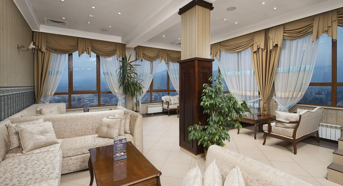 • Панорама Роял-бар, розташований на даху будівлі, під вежею з годинником, має панорамний вигляд на всі боки – на місто та на гори; ясно видно вершини Рили та Родоп; панорамний бар має 80 посадочних місць