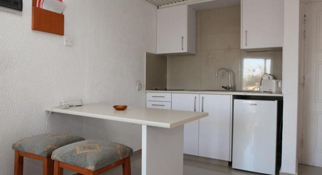 Останавливались в этом отеле несколько лет назад. Тогда мне там очень понравилось. У нас была студия состоящая из двух комнат. Одна была спальня, вторая кухня-столовая. Но там стоял диван и телевизор, а вся кухонная утварь пряталась за барной стойкой. Все номера отеля выходят на бассейн, по противоположной стороне идут такие галереи-балконы по которым вы попадаете в свои номера. Владельцы отеля – большая дружная семья. Вечерами в ресторанчике устраиваются всевозможное развлекательные программы. И еще там можно покупать свежевыжатый сок, вкусный просто не описать, особенно морковный. Соки отжимают в ресторане отеля и потом развозят по пляжу, пейте это вкусно и полезно. По поводу кухни ничего сказать не могу, мы завтракали в номере покупая молочные продукты, фрукты, овощи сыр и колбасу. Кофе и сахар захватили из Москвы. Когда мы останавливались в этом отеле, там отдыхали в основном англичане, очень милые и приветливые люди.