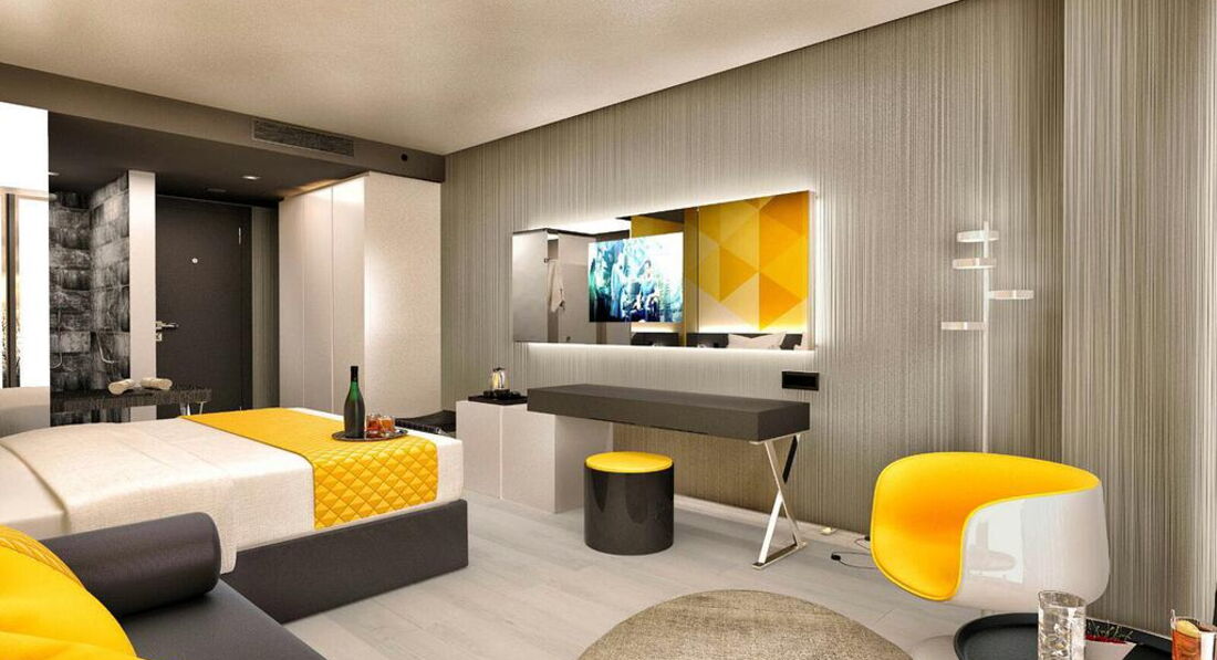 Менеджмент отеля очень быстро помог нам разместиться максимально близко. Нам повезло быть размещенными на 8 этаже с потрясающим видом на бассейн и море. Интерьер продуманный до мелочей. Каждый элемент подобран по стилю и цвету.