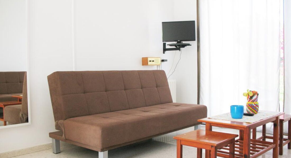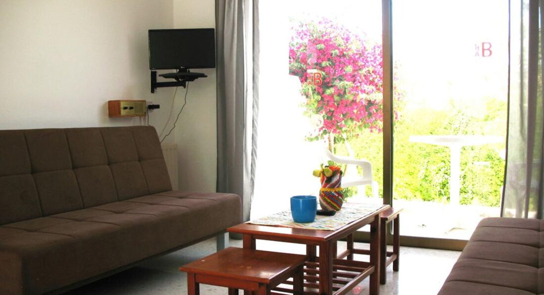 |Дві півторні ліжка, які можна зрушувати. Укомплектований кухонний куточок, холодильник, телефон, радіо, супутникове телебачення. Ванна кімната (душ) та балкон. Місткість: 2+1 або макс. 3 дорослих. |