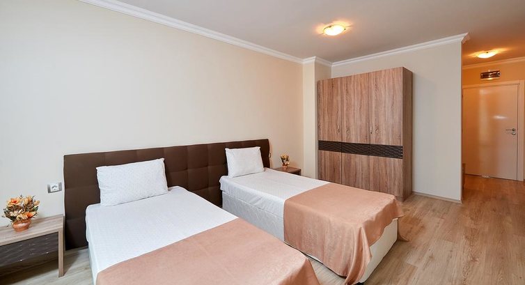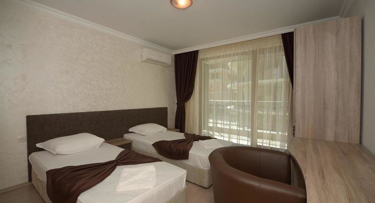 Этот комплекс я не рекомендую! В нем проживают собственники, а также сдаются номера. Места возле бассейна постоянно заняты, лечь не возможно, очень мало лежаков. Уборка в номерах хуже не куда. Возле моря все хорошие лежаки зарезервированы. В комплексе охраны нет, на территорию комплекса проникают посторонние из ресторана и свободно купаются, переодически испражняясь в бассейн и кусты. По ночам пьяные компании купаются в бассейне и орут. Ресторан при комплексе под руководством менеджера Адриана просто отвратительный! Камбалу подают тухлую, на претензию - менеджер ответил что камбала с запахом тухлятины это нормально и сам ее съел (я чуть не блеванул) !!! Вся рыба мороженая, качество еды хуже не куда!!! На дверях отеля весит объявление о наличии в ресторане питания "Шведский стУл" так вот это действительно стул!!! Мы больше не нагой в этот отель!