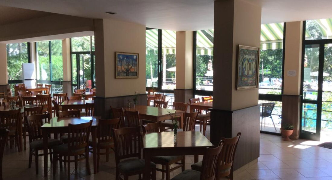 Еда странная (многие будут не довольны, но голодными не останитесь), просто в отебе повара почему-то всё пересаливали и много перца очень, да и огурцы в каждом блюде, короче питание 3 из 5, но в ресторане рядом (Хемус) официант, он же бармен, он же хозяин (!!!) на накормил за 20 левов (10 евро) вдоих с выпивкой , да ещё и угостил болгарским ромом. Питание было HB+ , а именно завтрак, обед (1 вид супа, 1 вид салата, и снеки какие-то или "пържен картоф"), но с 12 до 15 ч, пива, мороженного можно пить сколько влезет, вот в это время и можно возле вассейна поваляться, а вечером полноценный ужин и бокал пиво\вино.