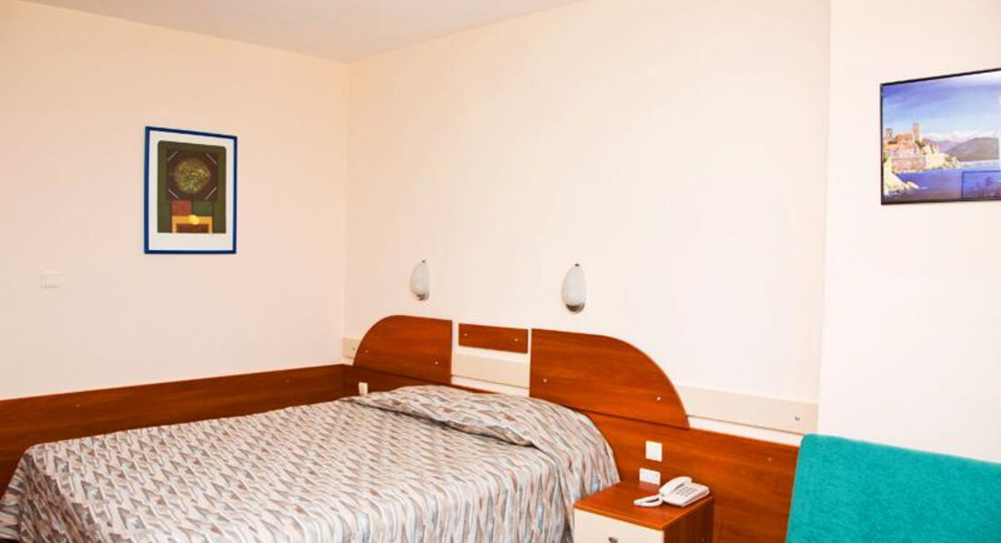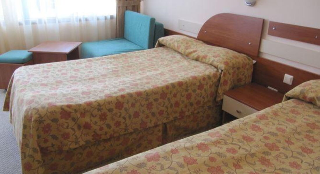 Отель понравился, если снова поеду в Болгарию, другие варианты даже рассматривать не буду. Расположен на берегу моря, тихо, спокойно, кто любит шумные отели-этот не для вас, конечно. Жила на 13 этаже, вид с балкона-на море, всегда слышен только шум волн. Звукоизоляция отличная, соседей не слышно. В номере стандартная мебель, вполне приличная, холодильник, сейф бесплатно, сантехника исправна, телевизор с 2-мя русскими каналами, на балконе-веревка-сушилка, в шкафу-много вешалок, есть где разместить одежду.