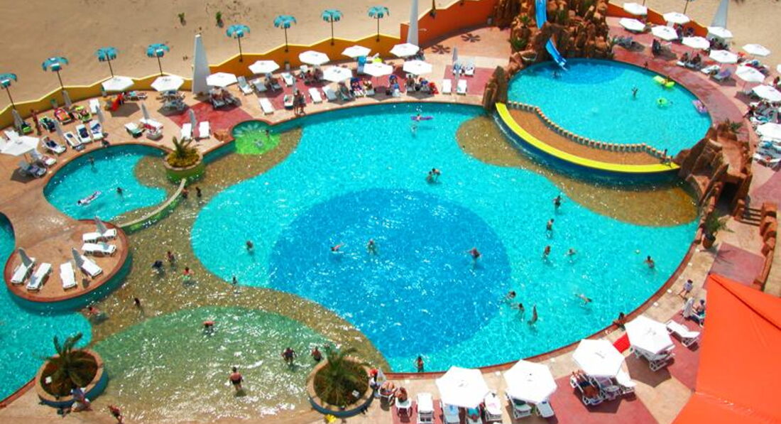 Есть бассейны с горками, я там не плавала, т.к. море рядом. На пляже лучше брать лежаки и зонтики, по 10 левов каждый, пользоваться можно в течение дня, на отгороженной территории отдыхать комфортнее, народу меньше, чем на свободной зоне.