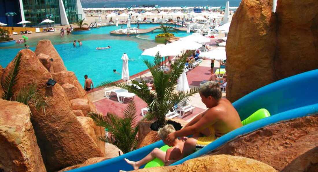 Питание очень средненькое, погода в конце августа начало сентября - ужасная, море холодное, ветер сносит с ног. Вода в бассейне - лед, дети заболеют сразу, поэтому наличие горок не важно, кататься на них вы не сможете, потому что приходится падать в ледяной бассейн.