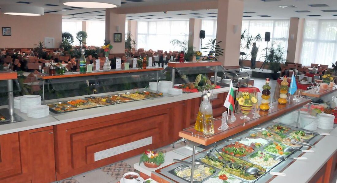 Питание в отеле достаточно скромное, выбор еды не велик...но голодными вы не будете....Через дорогу находятся два бассейна и бар, в котором вы можете выпить и что-то перекусить...Пляж общественный,стоимость оборудования от 4 левов.