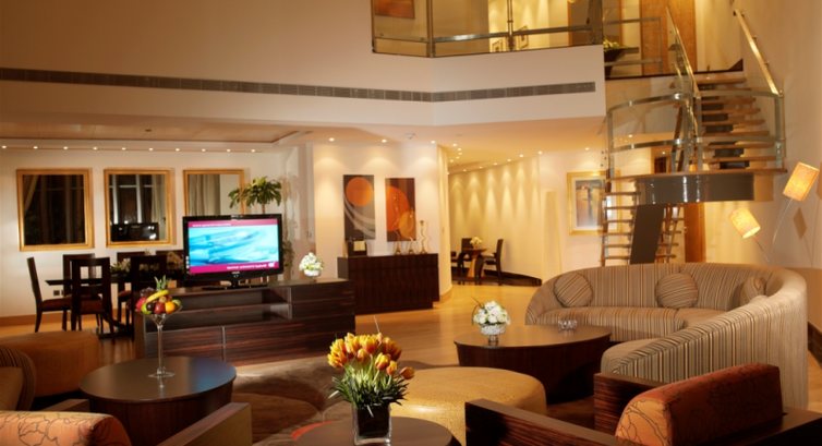 Жили в этоим отеле с 29/10 по 04/11. При выборе отеля в Дубаи столкнулась с тем, что по многим отелям мало отзывов, поэтому пишу свой. Заселялись в отель ночью, на ресепшене нет русскоговорящих сотрудников, но с нами была дочь 14-ти лет, которая неплохо говорит по-английски. Поэтому все общение с персоналом было через нее. И нам приятно, и для нее хорошая язоковая практика. Итак, по порядку. Требуют сразу депозит 500 др., я дала кредитовую карточку списали с нее, вернули в срок через 3-4 ня по приезду домой за минусом налога 20др. за ночь и расходов по мини-бару. Он конечно недешев, но в первую ночьу нас не было другой возможности попить воды, как из мини бара. Доп. кровать принесли в номер почти сразу, как мы заселились, кровать полноценная, мы немного сдвинули диван и поставили ее у окна в гостинной, чтоб не мешала проходу. Русских каналов нет, проси не проси - нет и все. Интернетом от отеля не пользовались. Ходили в Буржамам молл, брали что-нибудь в итальянском кафе и нам давали пароль. Питание - завтраки в столовой на 3 этаже рядом с выходом в молл.
