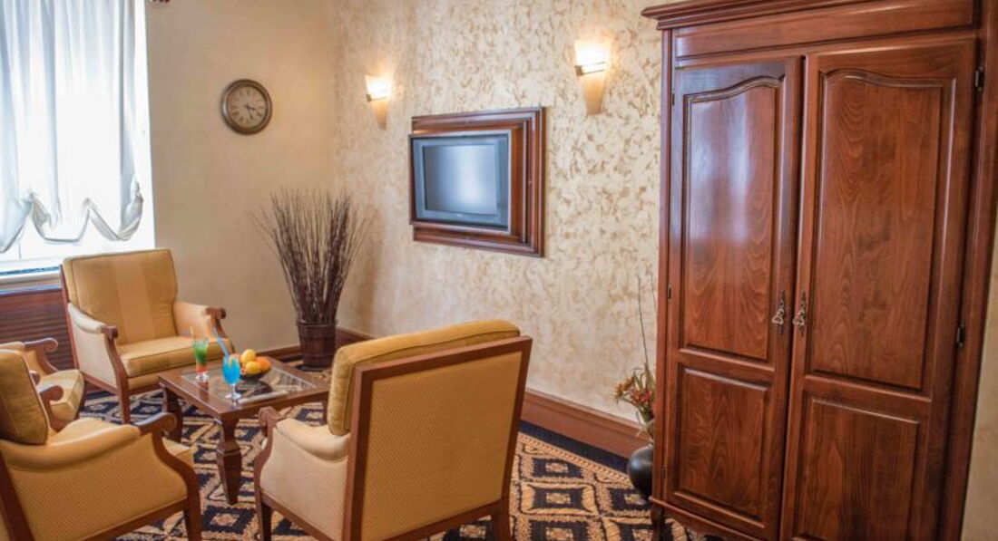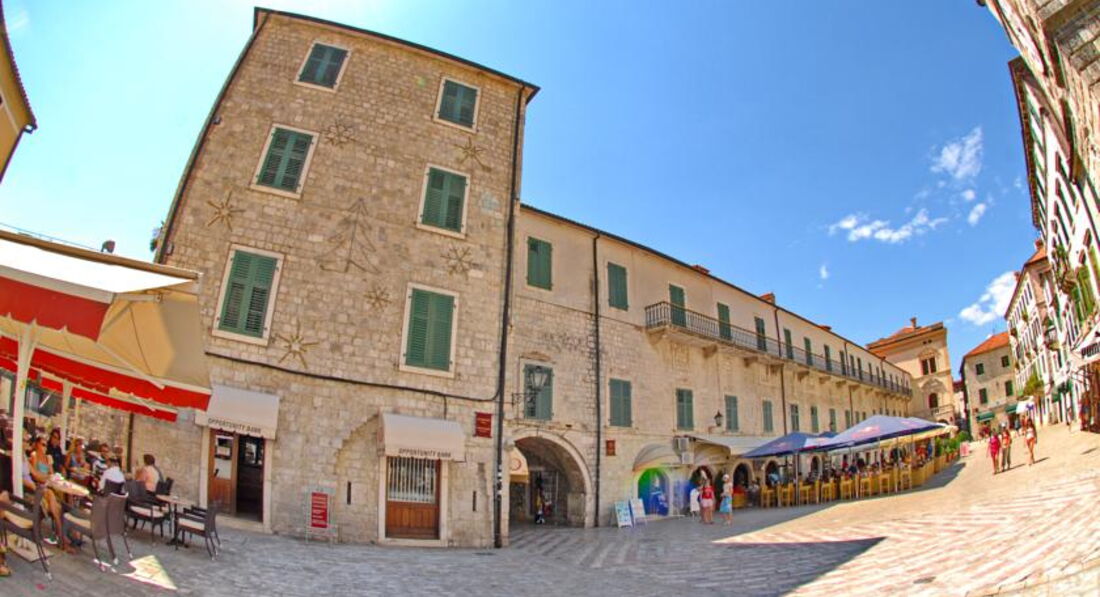 Весь комплекс розташований на головній площі міста, старому місті Котор. Інтер'єр виглядає, як у будівлі 18 століття з портретами старих капітанів та адміралів, картинами старих вітрильних суден та морської війни, але з усією розкішшю, яку можна собі уявити.