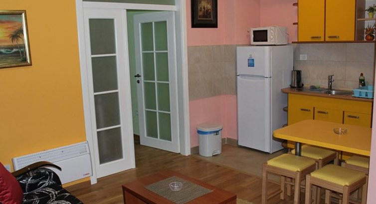 B APP DRAGA 04+1: двокімнатний номер, у спальні - французьке ліжко, у вітальні - розкладний диван та розкладне крісло, укомплектована кухня, холодильник, необхідний посуд, столова зона, кондиціонер, плазмовий телевізор, у ванній кімнаті - душова кабіна, пральна машина , балкон з видом на подвір'я. Площа номера-44 м2. Максимальне розміщення-5 осіб.