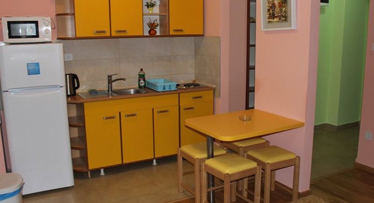 B APP NIKO 04: двокімнатний номер, у спальні - французьке ліжко, у вітальні - розкладний диван, кухня, холодильник, необхідний посуд, кондиціонер, плазмовий телевізор, у ванній кімнаті - душова кабіна, пральна машина, балкон з видом на море. Площа номера-44 м2. Максимальне розміщення-4 дорослих.