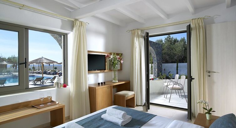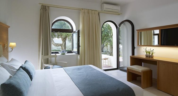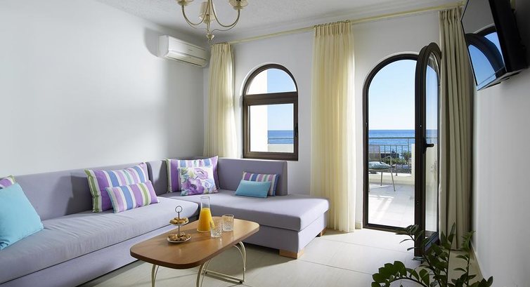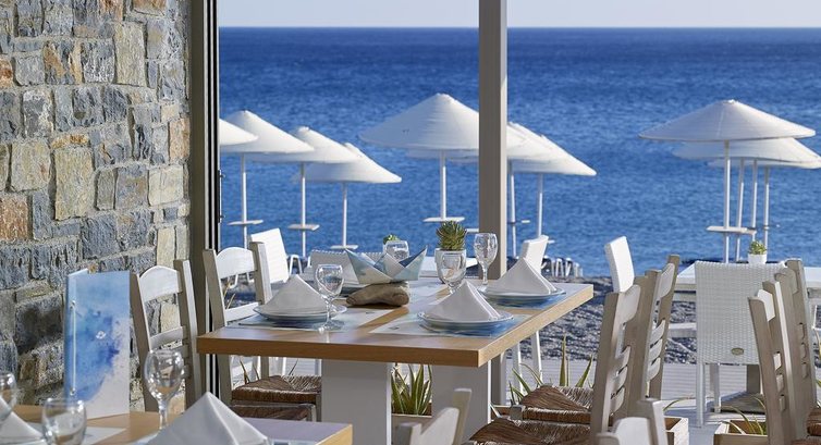 Територія та послуги: • інтернет кафе • wi-fi на території • основний ресторан Cretan (критська кухня, макс. 120 чол.) • таверна на пляжі Pelagos (критська кухня, макс. 120 чол.) • автопарковка • велопарковка • шатл до міста • виклик лікаря • камера зберігання на ресепшн • магазини Розваги та спорт: • відкритий басейн • Спа центр • масаж • верхова їзда • водні лижі • водний мотоцикл • банан • дайвінг Для дітей: • ліжечко в номері (за запитом) • стільці в ресторані (за запитом) Живлення: • HB – сніданок та вечеря. Пляж: Громадський піщаний пляж за 50 м від готелю. Парасольки, шезлонги – безкоштовно, пляжні рушники не надаються. До оплати приймаються кредитні картки: Visa, MasterCard, AmEx.