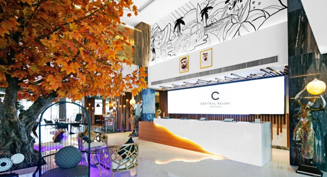 C Central Resort The Palm - це пляжний готель та курорт з видом на Аравійське море. До послуг гостей розкішні номери та люкси з сучасним декором, плоскими екранами та скляними балконами з видом на океан та Palm Jumeirah. Перебування в центрі відпочинку поєднує в собі все, що вам потрібно для ідеального відпочинку далеко від дому: приголомшливе розташування, чудове оточення, бездоганне. обслуговування та, найголовніше, просторі номери, доповнені широким спектром зручностей, таких як ексклюзивний доступ до приватного пляжу, бар біля басейну, кілька ресторанів, спа, фітнес-центр, магазини сувенірів, сучасний конференц-центр, водні види спорту, бари та багато іншого інше.