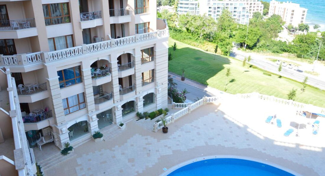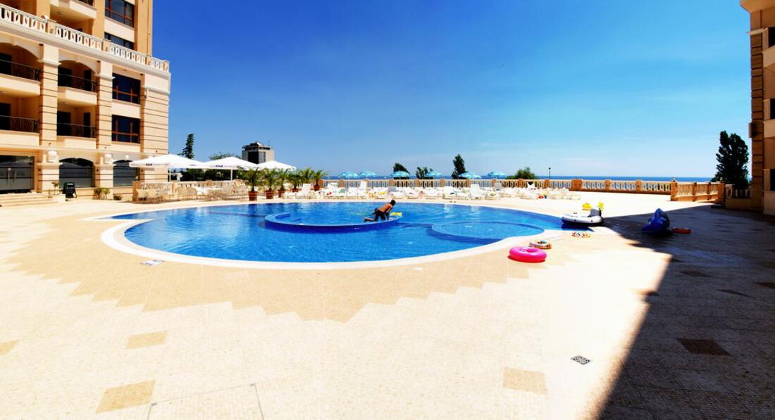 Привет всем. Нам с молодым человеком попалась отличная путевка в данный отель и мы, начитавшись отзывов согласились из расчета на то, что первая линия, пляж и море. Отель оправдал все наши ожидания, хотя это не отель, а апартаменты, номер с ходу нам дали шикарный, на нас двоих у нас была спальня, большая гостиная с кухней,просторная ванная, гладильная комната, большая прихожая, 4 террасы, одна была с плетенной мебелью и комната, закрытая на ключ, мы подразумевали что это еще одна спальня. Заселением были очень довольны, прилагался ко всему замечательный вид на море и бассейн со всех террас, этаж у нас был предпоследний, с лифтом проблем не было. до моря пешком 5 минут, есть собственный отельный пляж, но на удивление он тоже платный. у моря есть очень хороший ресторанчик, все очень вкусно, не знаю что они добавляют в свои салаты, но от них невозможно оторваться, кухня очень разнообразная и главное вкусная, по виду все натуральное, без огромного количества специй что можно спокойно кормить и ребенка. в отеле развлечений нет, но он очень удачно расположен, 20 мин неспешной ходьбы и будут золотые пески, у отеля есть 2 остановки, мы почти каждый день ездили в Варну, дорога занимает 20 минут, в Варне отличный шопинг, все намного дешевле, чем в Москве, купила много интересных вещей, так же есть огромный фруктовый и рыбный рынки, цены на все не дорогие, присутствует огромное количество парков, особенно детских, есть дельфинарий. Пляжный сезон у них закончился 15 сентября, хотя было вполне тепло в это время (+30 точно), но это для работников пляжа, они за пару дней по складывали лежаки, убрались и уехали. Последние 3 дня нашего пребывания были большие волны, хотя погода не испортилась, в море никого не пускали, на пляже всегда присутствует береговая охрана и на удивление они работают всегда, чуть что бегут и вылавливают вас из воды. в море купались только серферы, на пляже есть серф-клуб, что порадовало моего МЧ очень сильно, все 3 дня кроме серфа он не замечал никого, ребята-серферы все веселые, показали как кататься и даже дали доску в прокат (стоило нам это на целый день 300 рублей на наши деньги), а вообще все водные развлечения дешевые, покатались на всем, что там было. С пляжа в гору ходит подъемник, нам стало интересно куда это и мы прокатились по кругу буквально за 200 р.,ехали примерно минут 30, как оказалось это подъемник к отелям, которые расположены на горе. Вообщем отдыхом очень довольны и приедем еще раз обязательно.