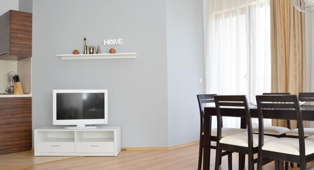 При очень небольшой цене, высоко квалифицированные услуги. Очень чистое и ухоженное здание, чистый и удобный бассейн с лежаками и зонтами. Ресторан супер плюс, чистота, высоко квалифицированное обслуживание, вкуснейшие блюда. Тихое и спокойное место, в квартирах при открытом балконе засыпаешь под шум прибоя. Сотрудники на рецепции всегда помогают по всем вопросам. Территория очень ухоженная. До пляжа вдоль дороги метров 500, нас это не напрягало, конечно лучше иметь прямой выход к морю, так как благоустройства самого курортного городка не впечатляет, но и не оставило особенного негатива. Мы впервые были в Болгарии, и не ожидали что очень достойная страны. Когда хотелось шума и тд. Ездили на Золотые пески, тем более что до них 3 километра. Но как приятно возвращаться в тишину и спокойствие. Очень рекомендую, семейным парам , и семьям с маленькими и вообще с детьми.