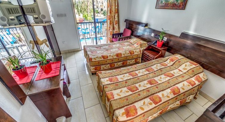 Отдыхала с подругой в отеле с 16 по 26 июля. Отель очень понравился! Я бы дала ему 4*. Все фото в интернете соответствуют действительности. Хорошие номера, бассейн, бар, где можно посидеть. До моря 6 минут( специально засекали). Из минусов: скудное и однообразное питание по утрам и уборка номеров. Ко мне приходили убираться в сиесту(которую сами устроили, я имею ввиду киприотов), т.е. когда мы отдыхали после моря часа в 2.00. В остальном претензий к отелю нет. Девочки на ресепшен всегда помогут, ответят на все вопросы. Кондиционер и телевизор работали, правда нет русского канала, хотя некоторые туроператоры пишут о наличии. Можно взять на прокат холодильник-3 евро в день.