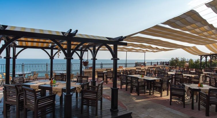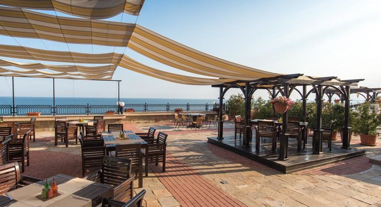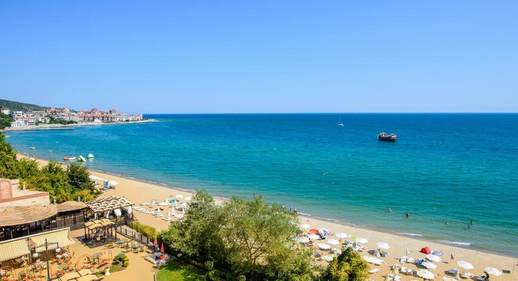 Отдыхали с семьей. Отель очень понравился. Но он не 5 зыезд, а 4. Но внутри и номера все тянет на 5. Бывала я много где, но столкунулась впервые с этим пожалуй только в этом отеле. а именно по системе все включено. В номер можно уносить все что годно из ретосрана из баров и тп. Никто даже близко к вам не придерется. Как то одни день было прохладно и мы решили в номере поваляться, фильмей посмотреть, натащили всего: пиво чипсы хот-доги и потом текилу с лимоном, вообщем бери че хошь. Даже на завтраке пей вино, бочки не закрывают и ночью в холле всегда соки вода чай кофе и тп. Кормили очень по домашнему, вообще болгарская еда похоже с нашей, не то что в Турции))). Да и давали морепродукты. Море- это сказка, читала отзывы про Болгарию в других местах какие то кусачки, медузы. Там ничего такого нет, очень много рапанов, муж привез целый пакет ракущек от больших до маленьких. Вобщем не сказать что даже Черное, чистое.....Единственное это место не для молодежи которые хотят потусить анимации в отеле нет, только для детей вечером но на немецком и одно и тоже))) Мы видели как молодежь ездила на такси в Солнечный берег. Вообщем отель супер не пожалеете едьте.