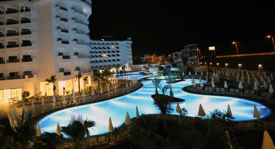 Отель находится 1.20 1.40 от аэропорта. Заселяют только после 14.00. Номера новые хорошие. Но думаю через годик они покроются плесенью так как вытяжка никакая. Да система вентиляции отеля так себе. В коридорах жарко. Уборка номеров плохая. В отеле много турков, поэтому бармены выбирают в первую очередь их))) сейчас отель забит на сто процентов. За едой очереди. Еда правда сказать хорошая, несколько видов рыбы и мясо, по утрам много выпечки. Один раз на ужин давали раков, мидии и тунец. По поводу первой береговой лиии это смешно.