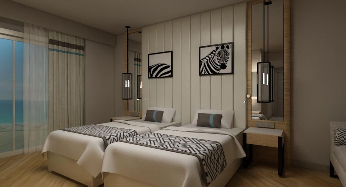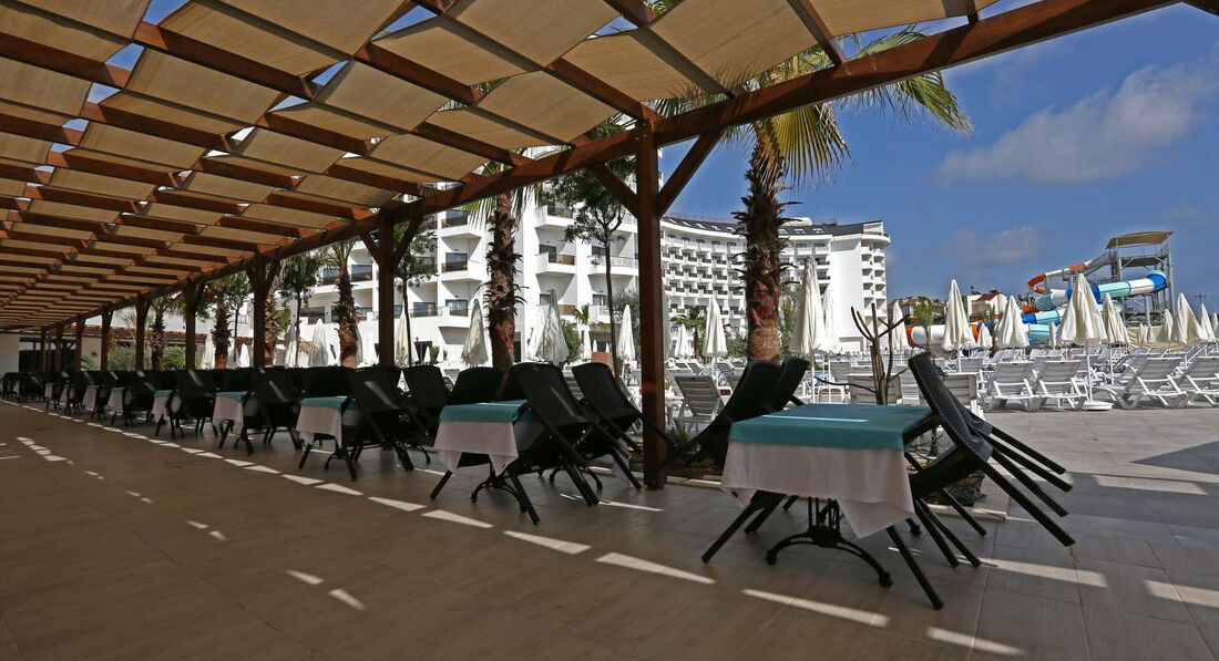 Отдыхала в мае с семьёй ( в семейном номере).К стати "обилие дневного света" в семейном номере не ощущалось,т.к номер выходи боком к морю с видом на поле (света реально не хватало)!Море прохладное,облачка и совсем чуть чуть дождика не помешали нашему отдыху!Отель понравился!Всё очень чисто!У отеля ещё нет звёзд (видимо получит в конце сезона).Я сама видела как в ресторане брали еду в контейнер на проверку и как в лобби турецкие стаканчики для чая(чистые) по одному щипцами окунали в кипяток!Из отдыхающих были русские и немцы (ну и турки по выходным с семьями). Конечно немцев больше "любят" т.к. они чаевые оставляют!Отель был по ощущению заполнен на половину,но по мере прибывания людей росли очереди в ресторане за едой и занимались шезлонги)))Нам конечно повезло,что отель был заселён не полностью! Из дискомфорта у меня было только оч.плохая шумоизоляция в номерах (сверху ребёнок орал ночью,и мы все номера вокруг не спали, с боку пили и матерились,а дверьми от номеров просто по мозгам били) берите бируши (( и еще один минус наши пьяные в стельку соотечественники некоторые еще к тому же с детьми за которыми им следить и воспитывать "некогда"!!!!Родители пьют а дети табуном носятся по ресторану и орут во всю глодку!! !"Халявный"алкоголь для русского человека все таки страшный соблазн,люди превращаются в свиней!За 9 дней в отеле провели 2 пенных вечеринки,пару дискотек,вечерняя анимация каждый день (по желанию за денежку возили в Аланию на дискотеку).