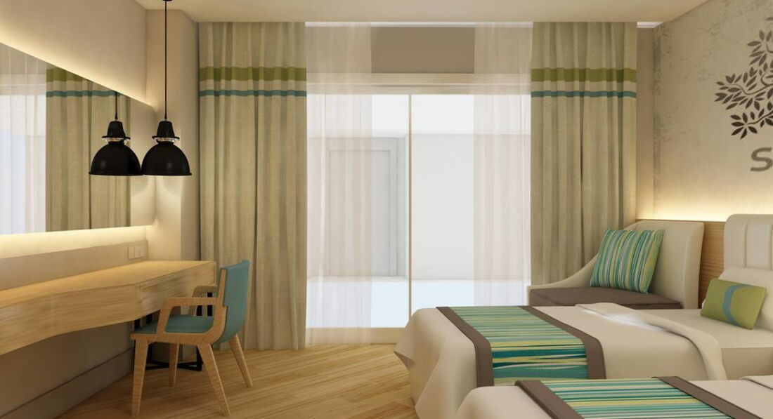 Мы находились в отеле 9 дней.Как и говорилось ранее приехали в отель за полтора часа,заселили быстро..не более 15 мин.В номере убирали каждый день,постель меняют 1 раз в 3 дня.Все чистое и новое в номере.Если вдруг возникают какие то вопросы,обращайтесь на рецепшен все записывают на листочек и решают очень быстро.Питание разнообразное,есть и рыба нескольких видов и мясо.Перечислять можно долго...С нами был ребёнок,сначала тоже искали каши....не находили...потом увидели,что по утрам в сухих завтраках присутствуют хлопья овсянки,причём и просто хлопья и хлопья с фруктами.Заливали горячим молоком и наслаждались кашей)))Пляж в 4-5 мин ходьбы.Большой,красивый,свободный пляж.Есть рядом на чем прокатиться..- банан,водные мотоциклы и т д.Цены кусаются. Очень порадовала анимация!Шикарная сцена возле отеля,где каждый лень были разные выступления .Акробаты,танцоры,певцы,муз.группы,иллюзиониста....Соскучится не дадут .Каждый день аква аэробика, пляжный волейбол, гимнастика,дартс,мини диско.Есть недостаток в оборудовании самого пляжа.Мамы с колясками мучаются,нет дорожек. Но думаю исправят.Так что с выбором не ошиблись,т.к заказывали по раннему бронированию и очень переживали за отдых