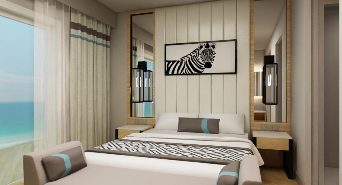 3)ОТЕЛЬ - совершенно новый , открылся 21 апреля 2017, поэтому все очень чистое, новое, в очень хорошем состоянии. очень большой, в смысле номеров, практически все они в видом на море , у кого то прямо на море, у кого то море сбоку, но отовсюду его видно))Когда покупали тур, отмечали что хотим просыпаясь утром видеть море, но нам дали номер с «боковушечкой». Все просьбы и переселении никаких результатов не принесли(( Это жаль конечно, но не страшно. В номере как обычно бутылка воды, и все прибамбасы в виден полотенец , шампуней, мыла, все как положено. Убирались почти каждый день, кроме дня накануне выселения, ну видимо решили, что чего возиться, раз все равно уезжают)))Лебедей не крутили, несмотря на чаевые)) но это тоже фигня) Сейф в номере бесплатный. Что касается интернета, он есть в Лобби, очееень тугой, но 7 $ ( за неделю) и вам выдают пароль , инет работает исправно, причем даже на пляже, который на минуточку через дорогу от отеля.
